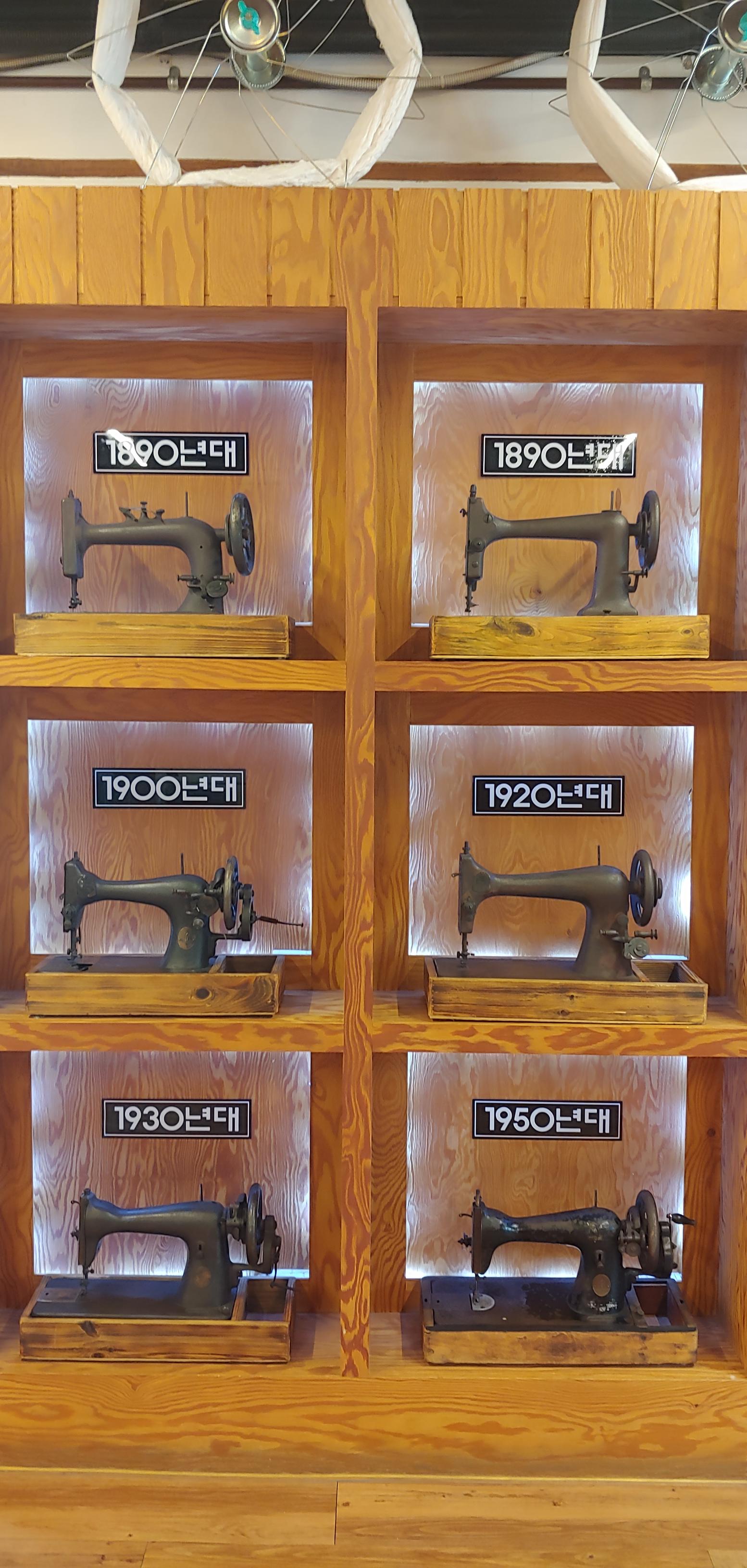 시대별로 전시된 재봉틀.