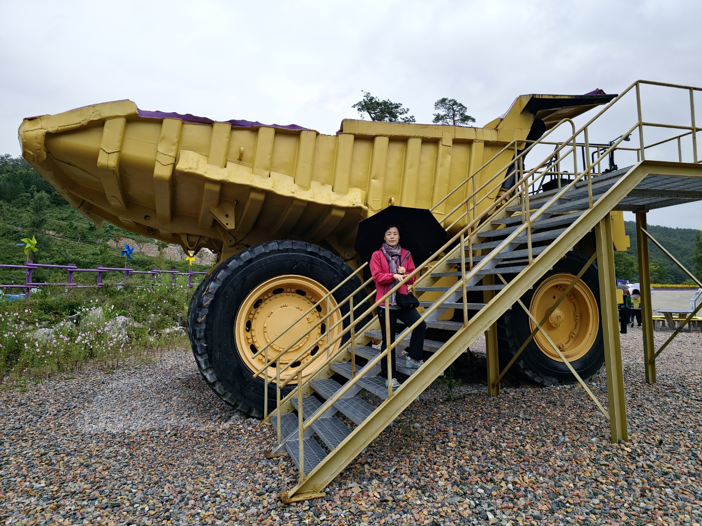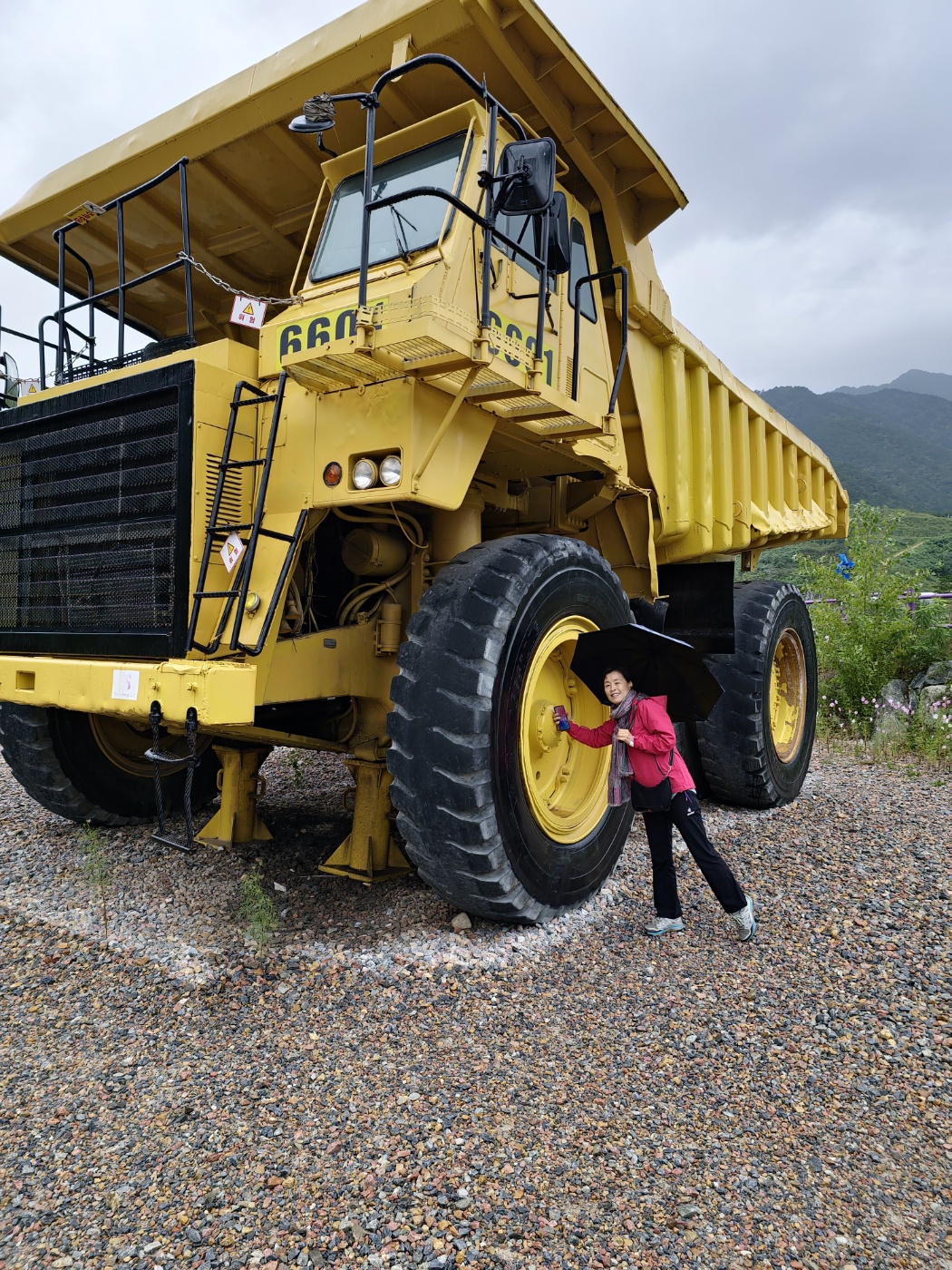 예전에 작업을 하던 장비 같은데 바퀴 하나가 내 키보다 크다.