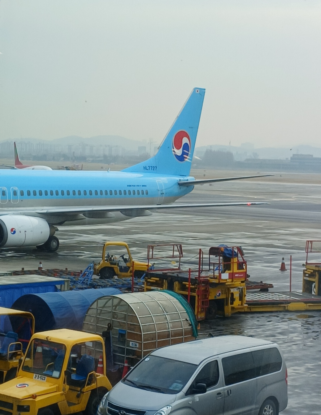 비행기가 지연 출발한다는 바람에 공항을 운동 삼아 오가다 심심풀이 삼아 비행기 사진을 찍는다.