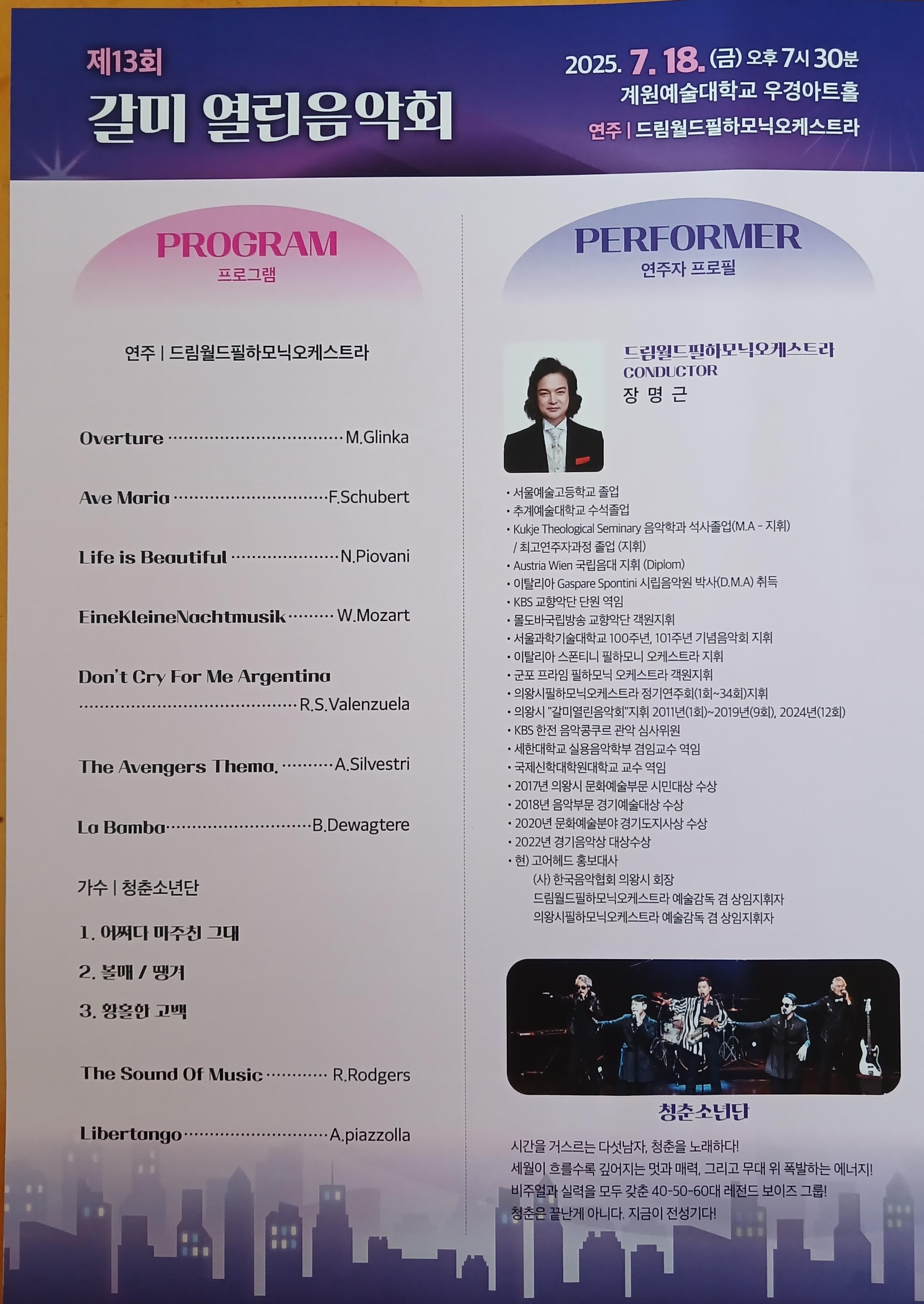 | 제34회 의왕시필하모닉오케스트라 정기연주회 '스크린뮤직' (15) | 2025.07.17 |