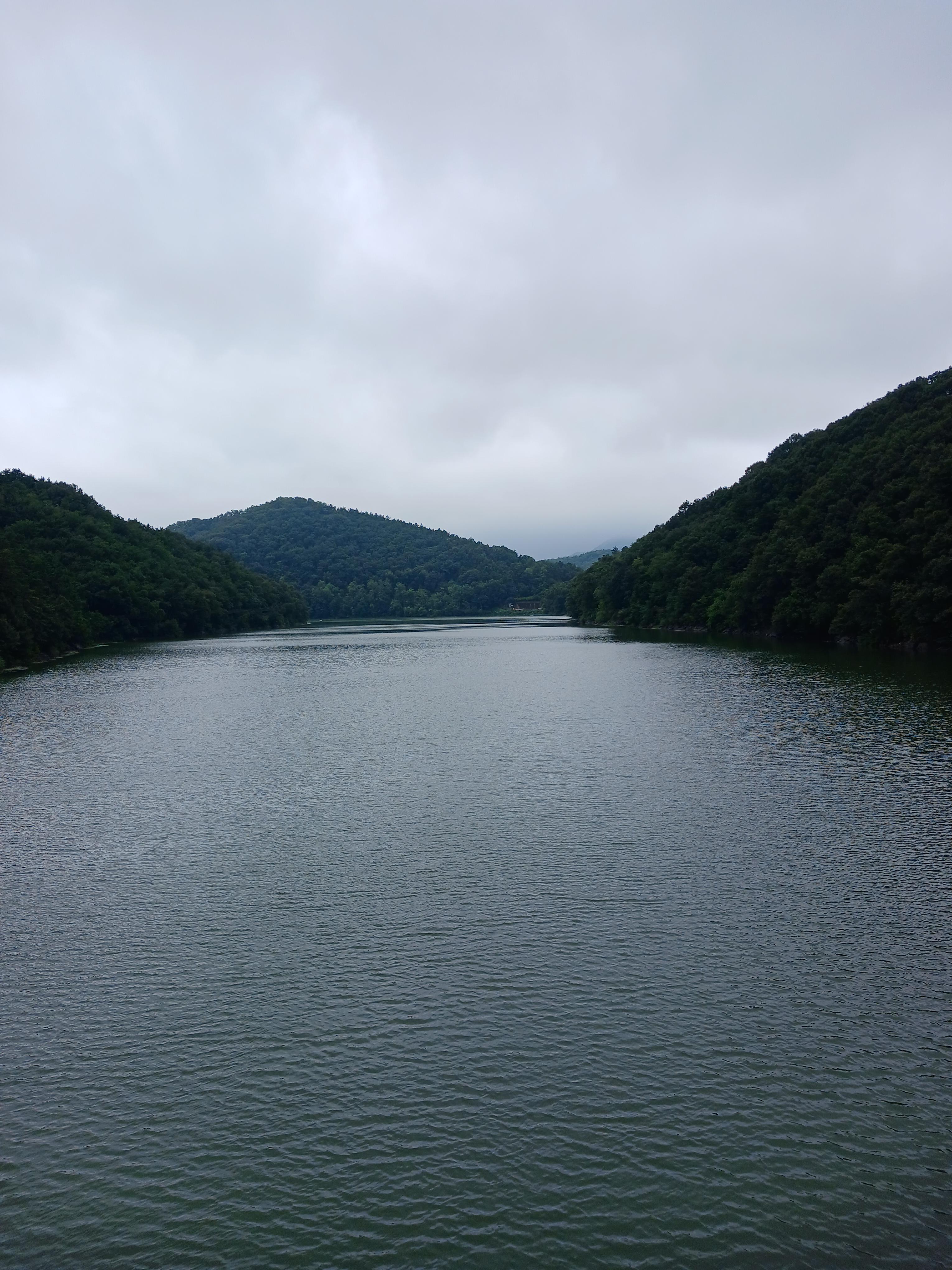 하늘은 묵직한 잿빛이지만 바람도 초록빛이고, 산도 초록빛이고, 호수도 초록빛이다.