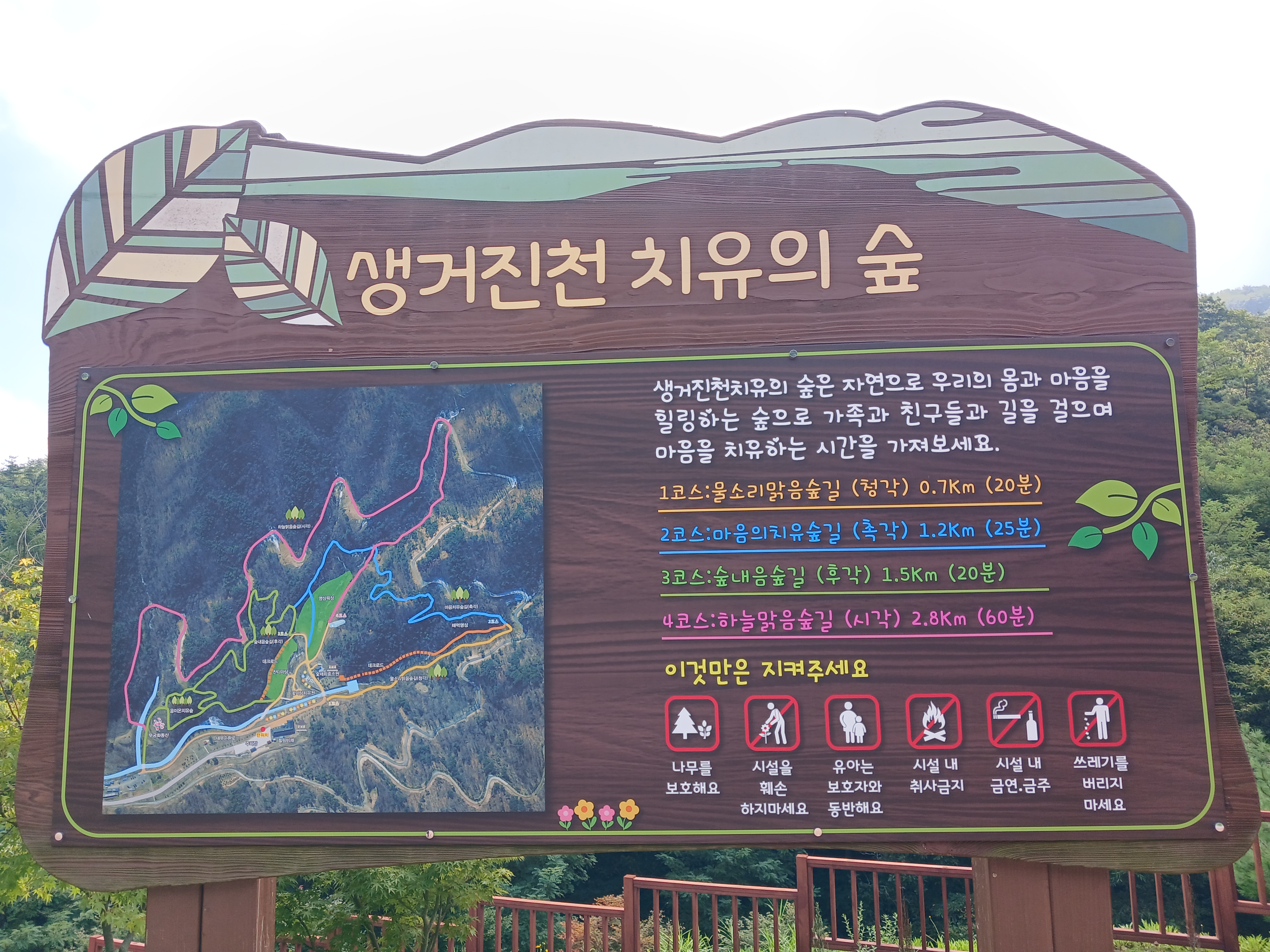 우리는 1코스인 물소리맑음숲길로 올라가 2코스인 마음의치유숲길로 내려오기로 했다.