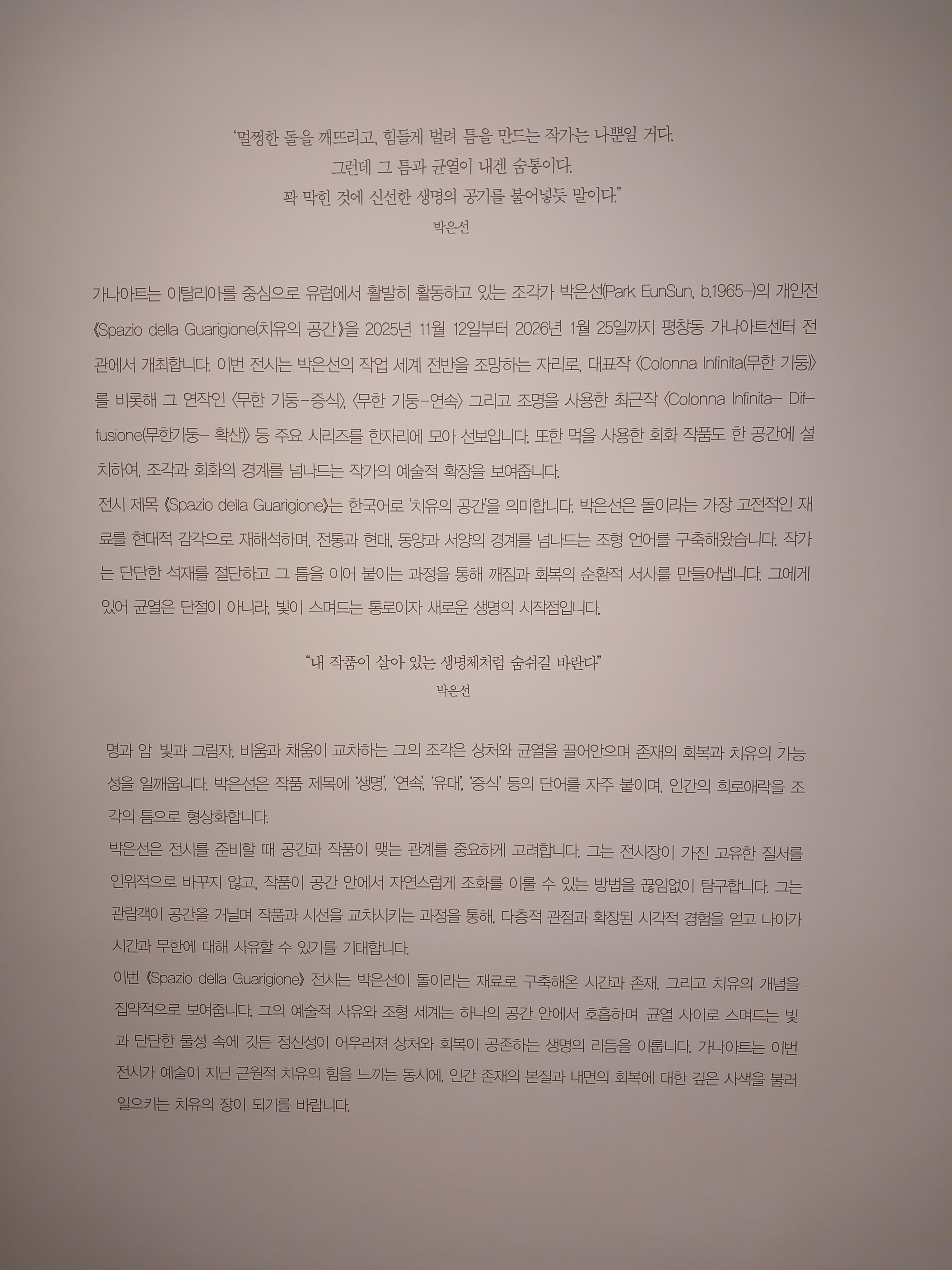 작가가 이탈리아에서 어떤 마음으로 돌을 쪼고 잘랐을까 생각을 하면서 작품을 보게 된다.