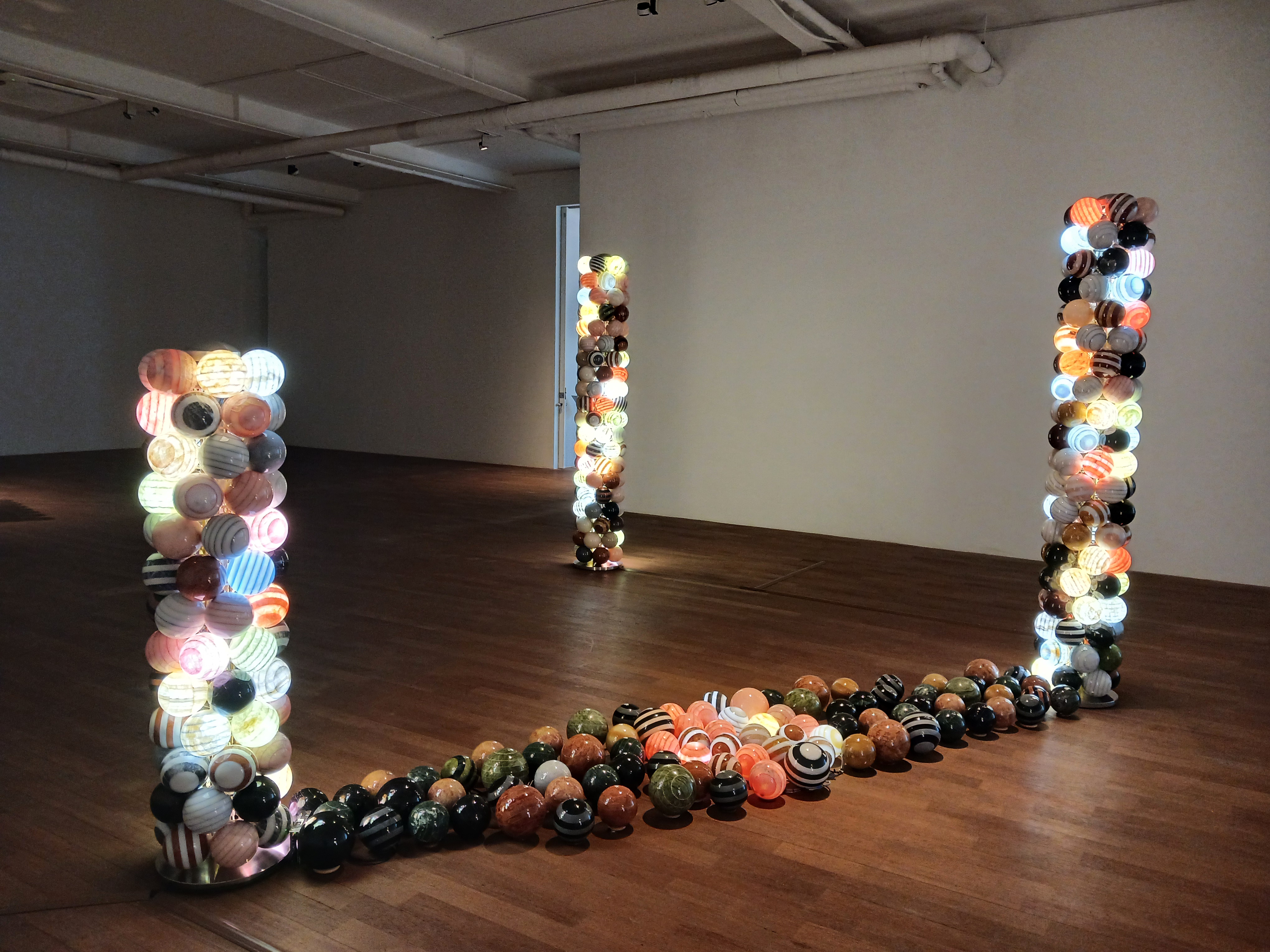 무수한 구슬이 바닥의 거울에 비치는 작품이다.