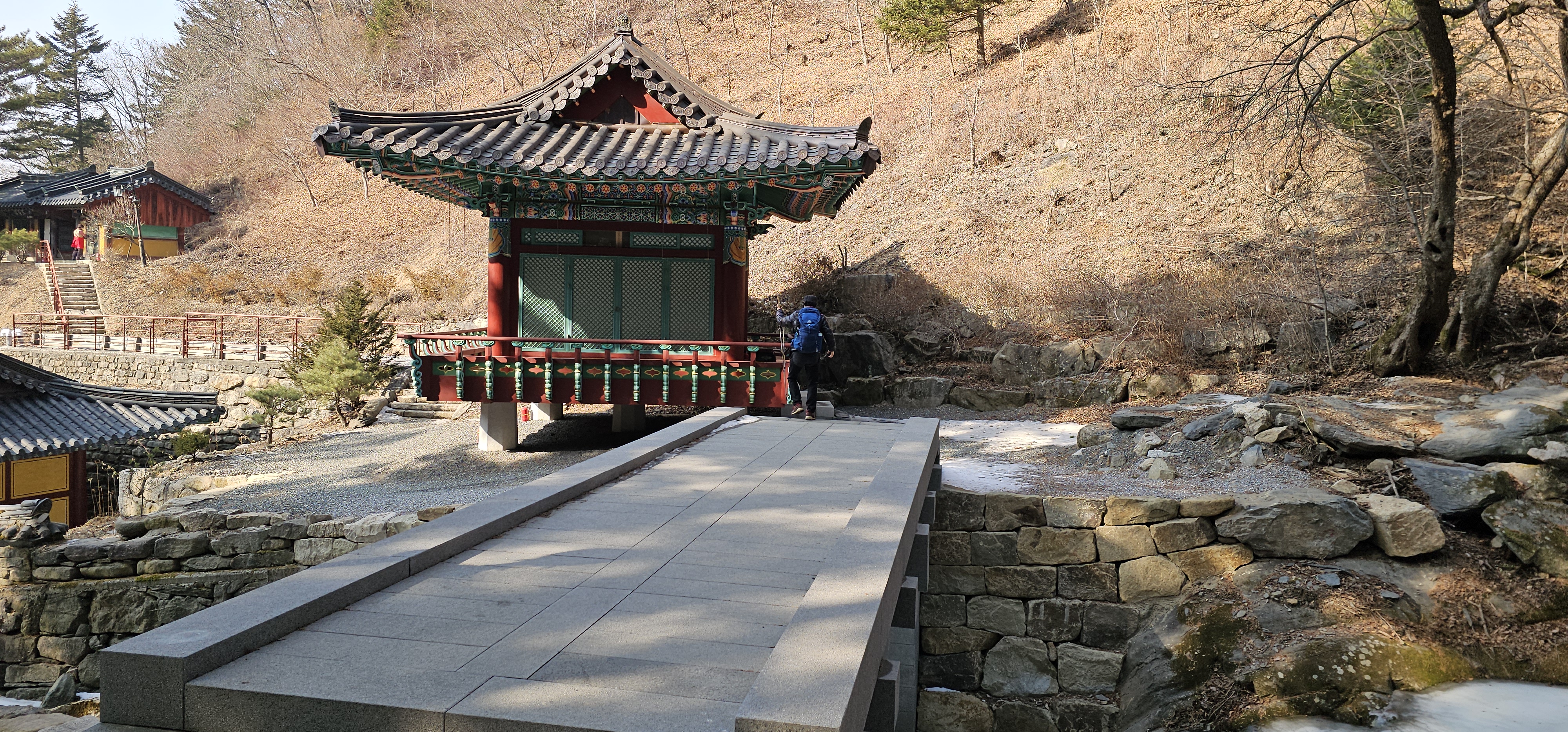 정암사는 일주문과 문수전 등이 일직선상에 있지 않은 구조를 갖고 있다.