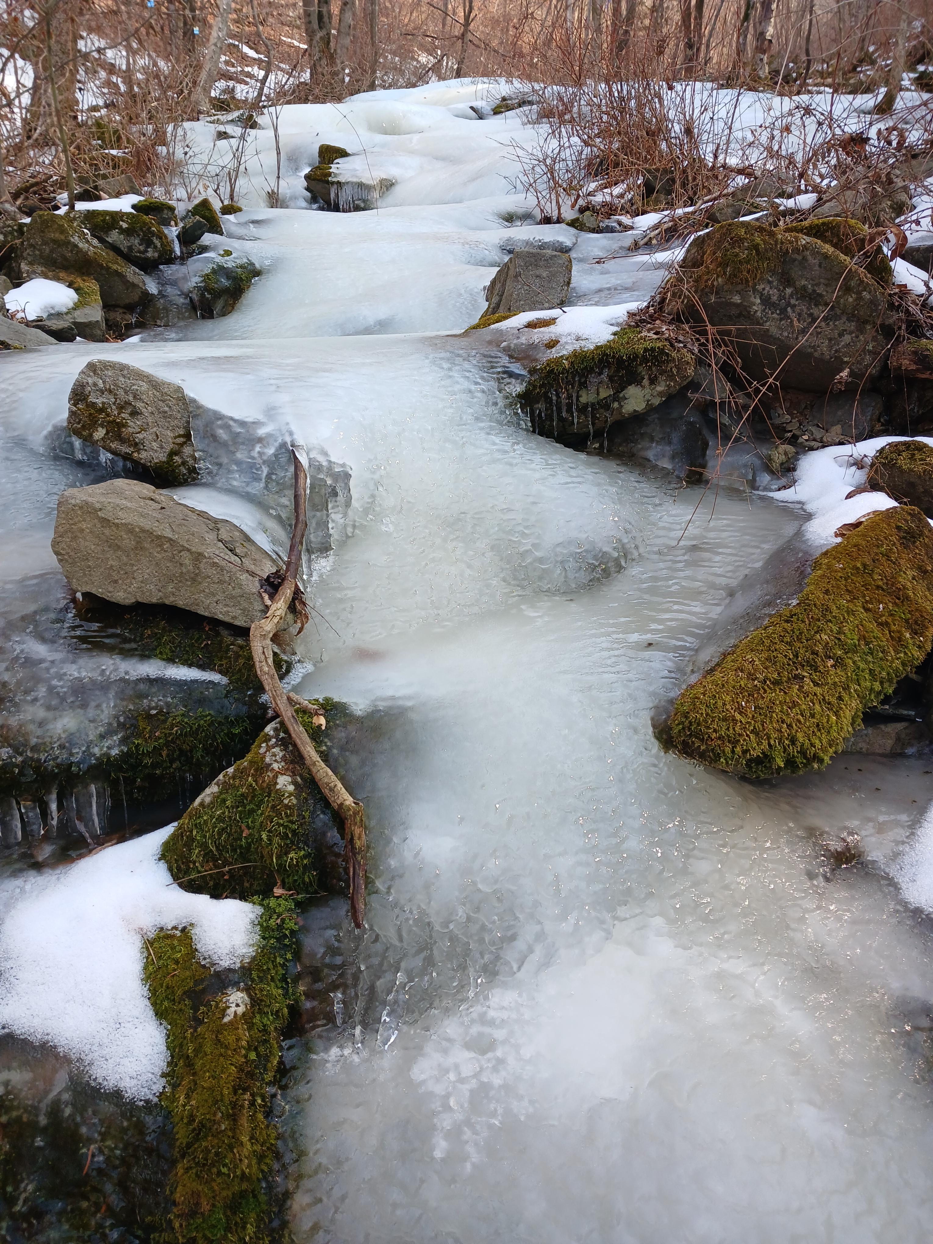 뽀얀 곰탕을 얼려 놓은 빛깔로 계곡이 얼었다.