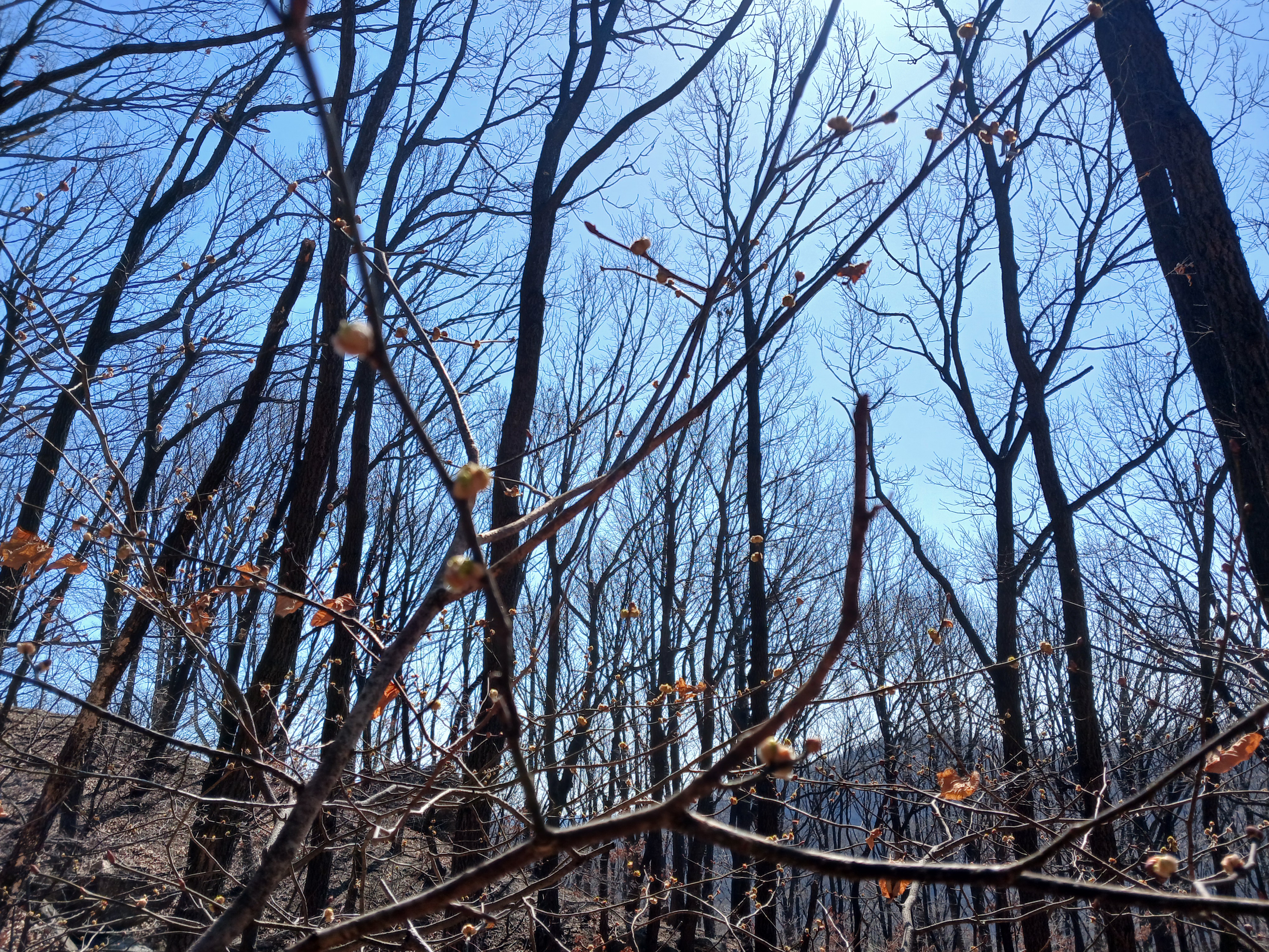금세 노란 꽃망울을 터뜨릴 것 같은 생강나무