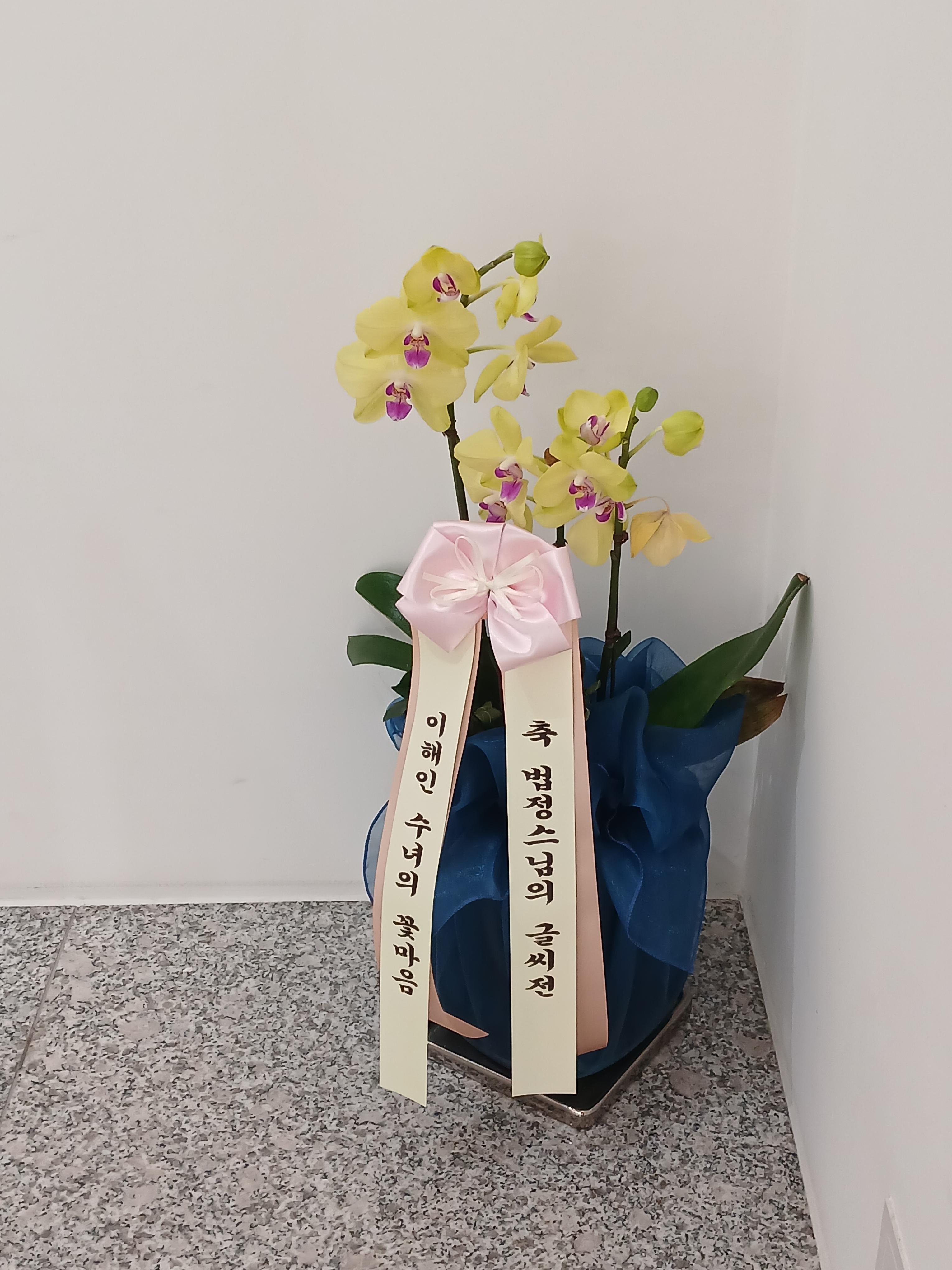 이해인 수녀가 보낸 난 화분이 계단 한쪽에서 화사하게 밝히고 있다.