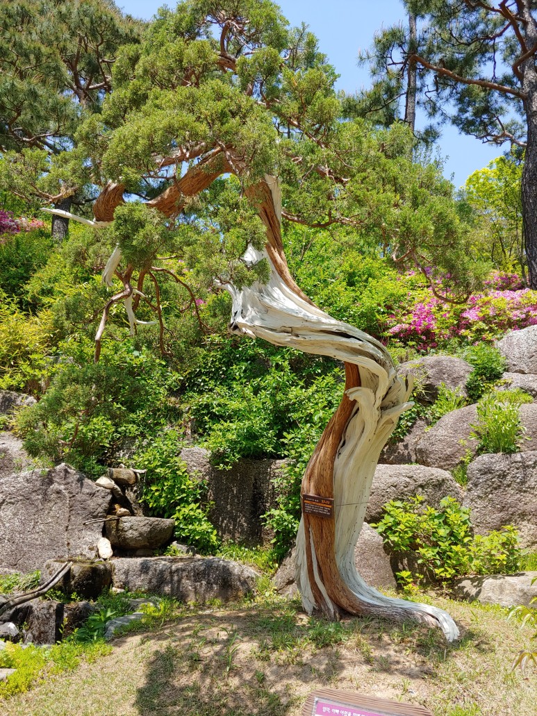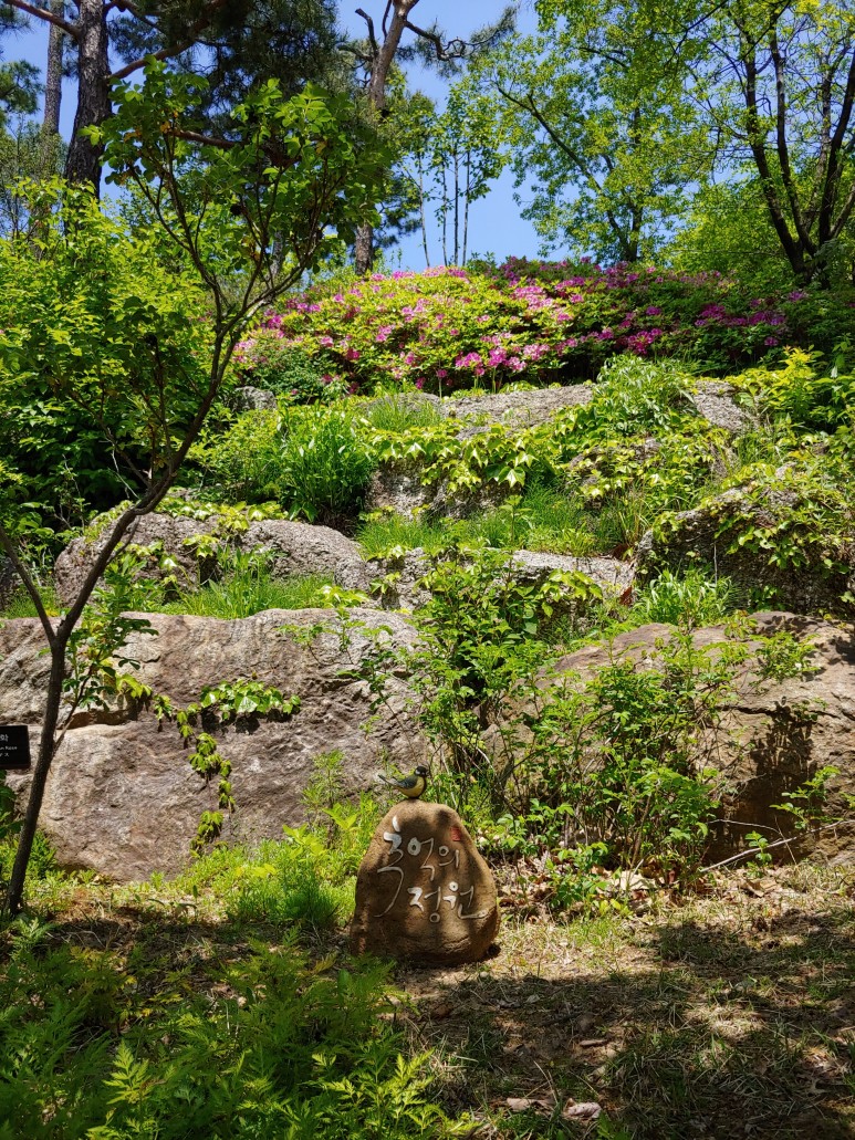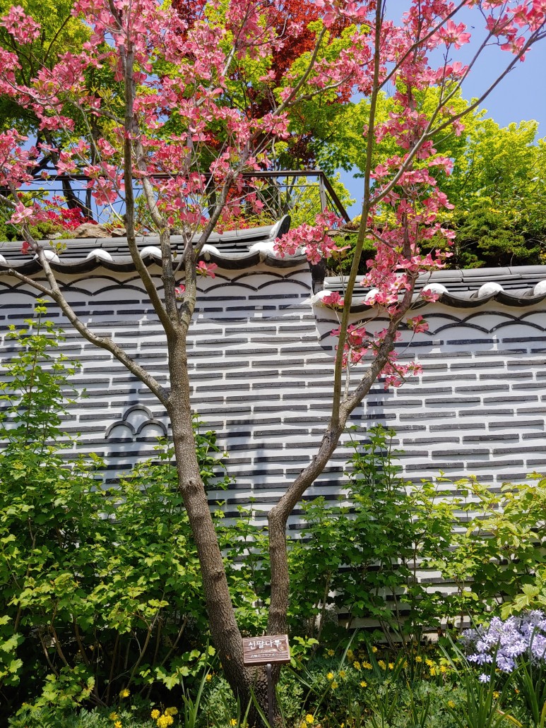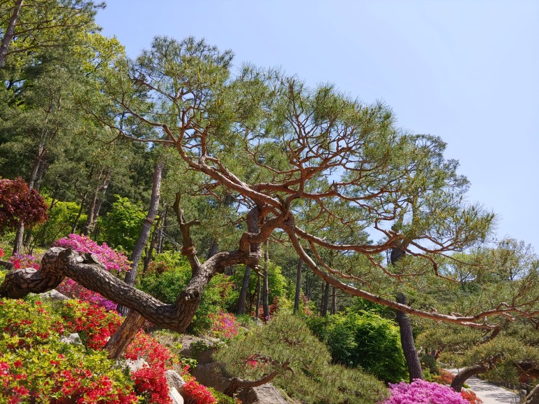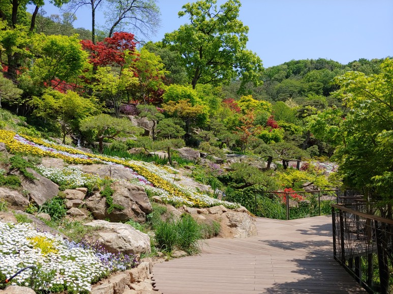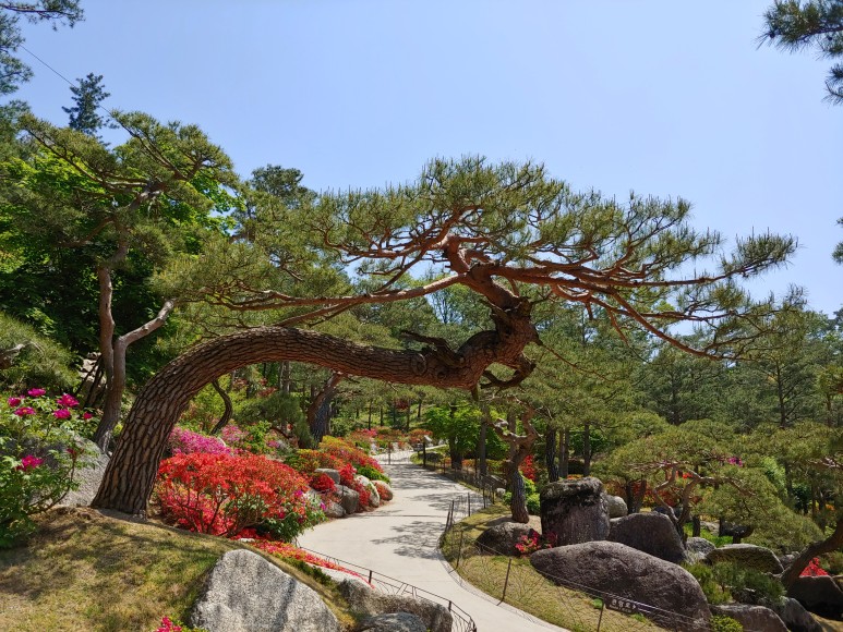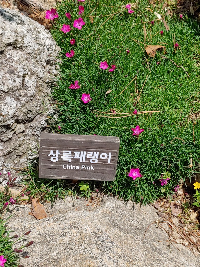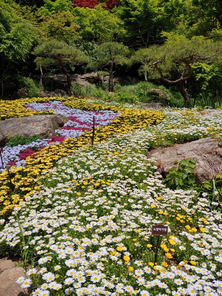 한반도 지도를 옆으로 돌려놓은 것 같은 모양으로 꽃을 가꾸었다.