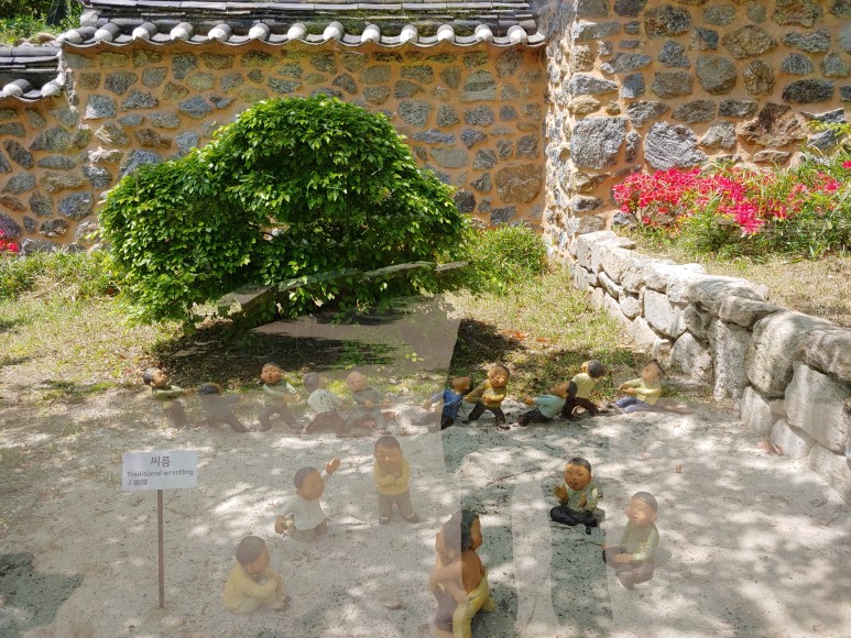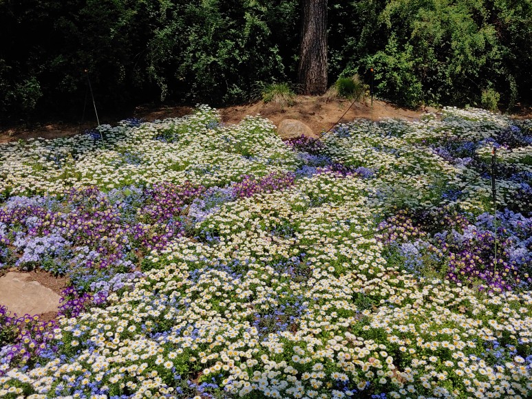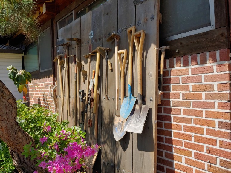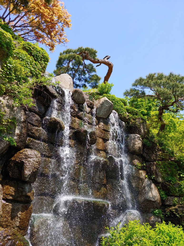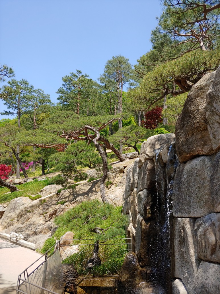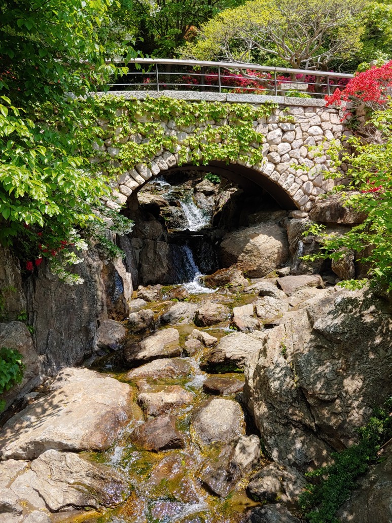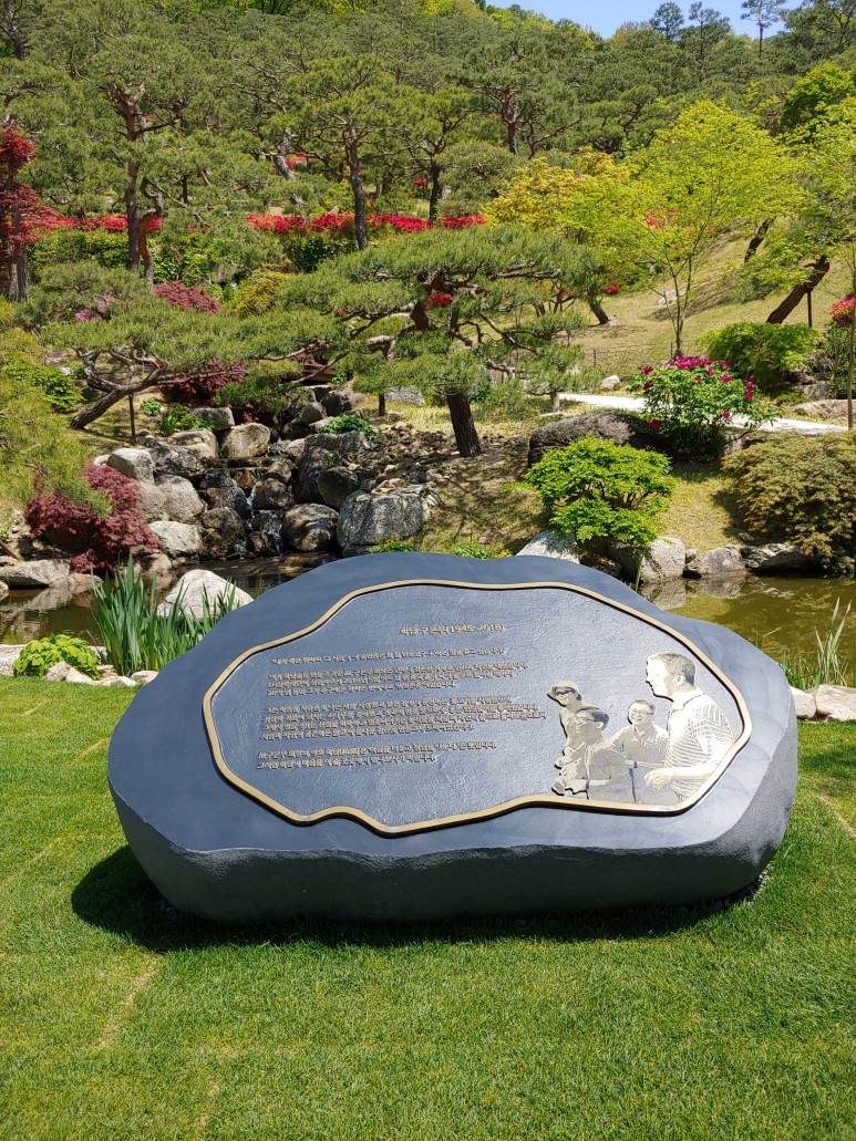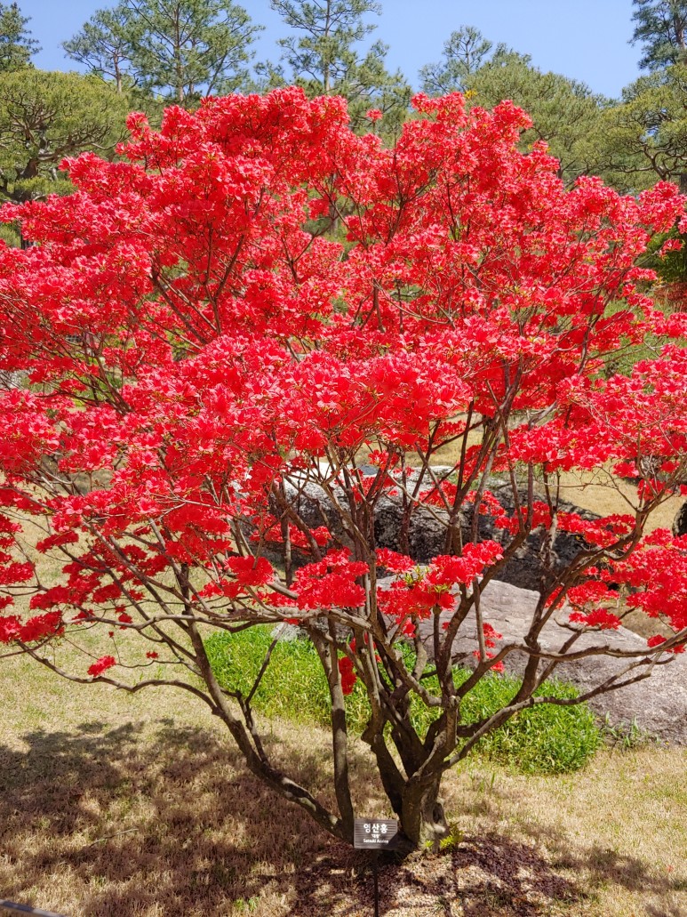 한반도 지도를 옆으로 돌려놓은 것 같은 모양으로 꽃을 가꾸었다.