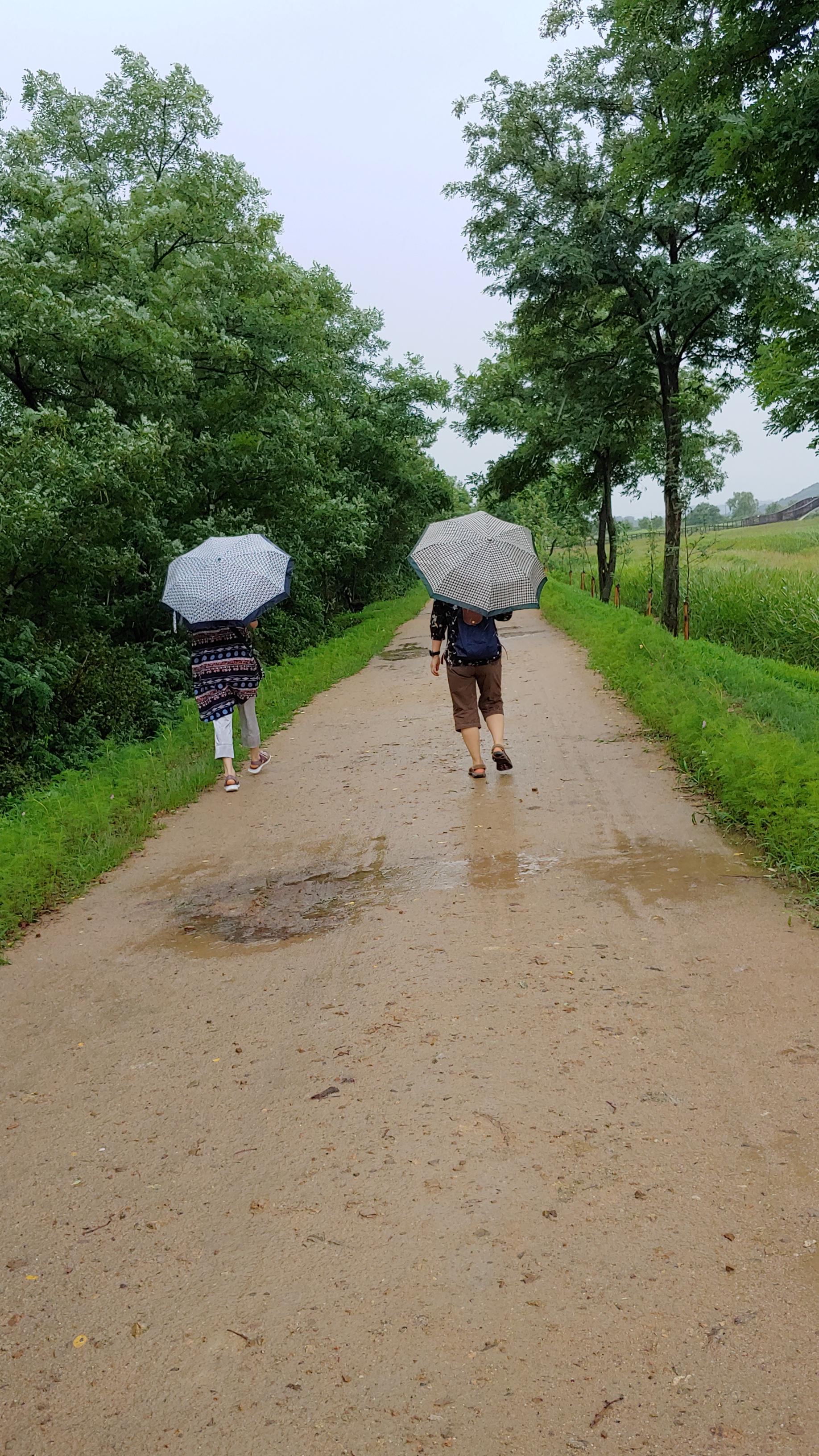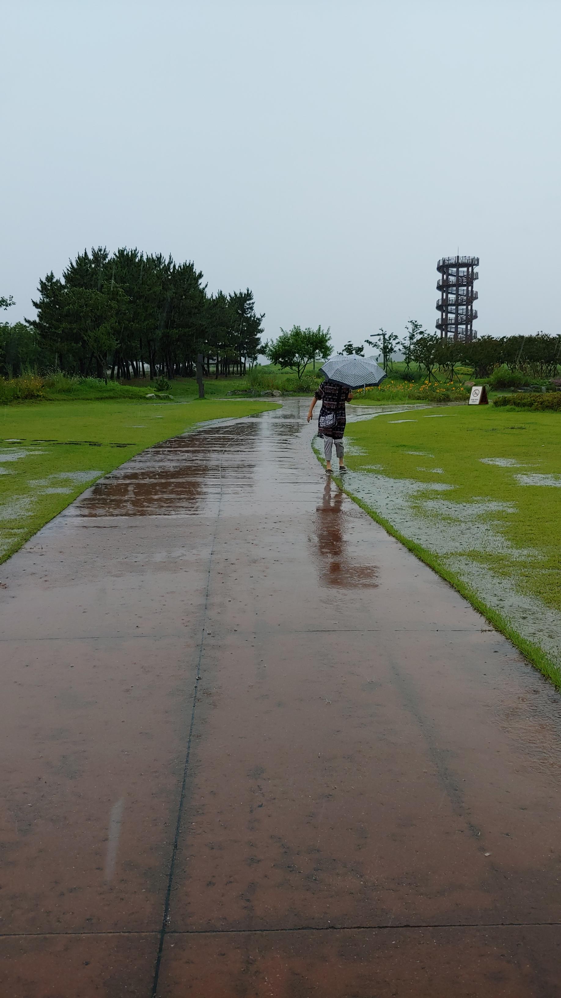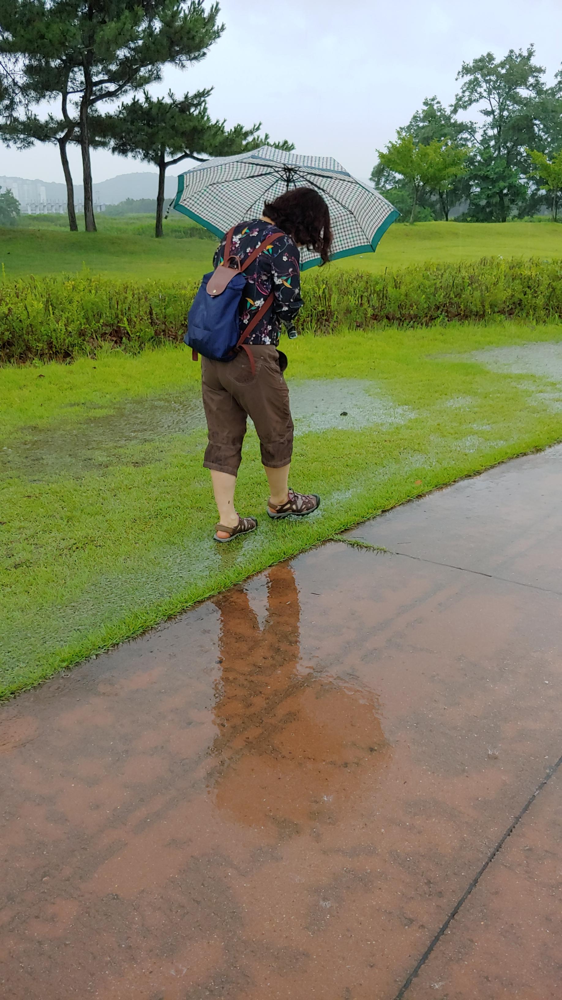 어릴 적처럼 비에 젖은 발을 첨벙첨벙