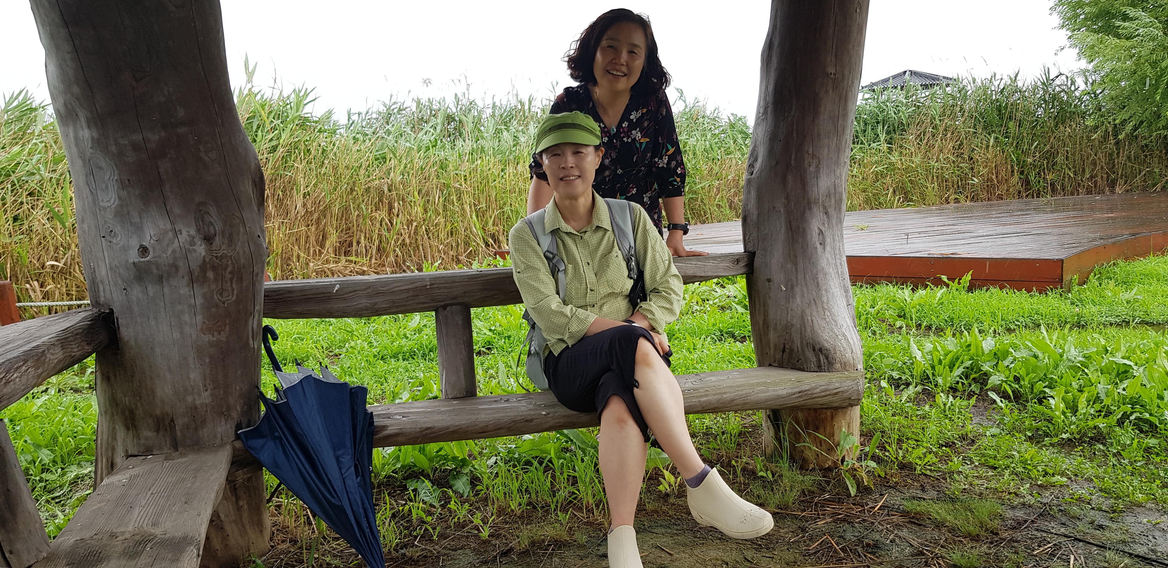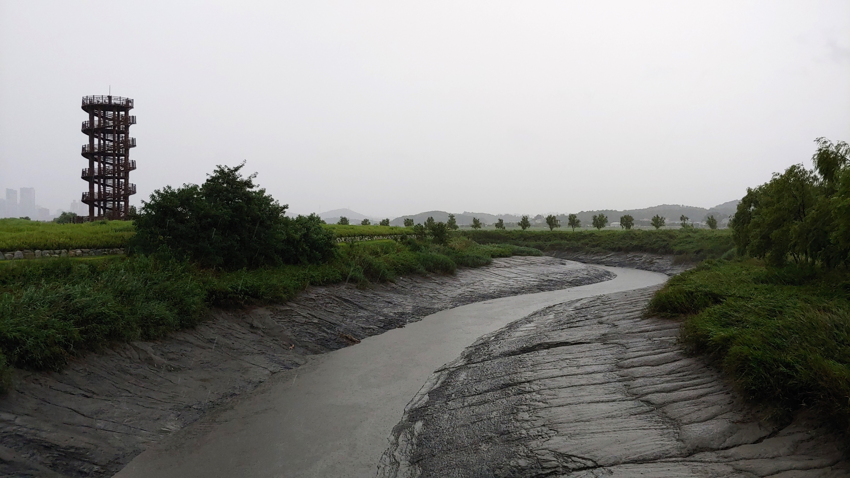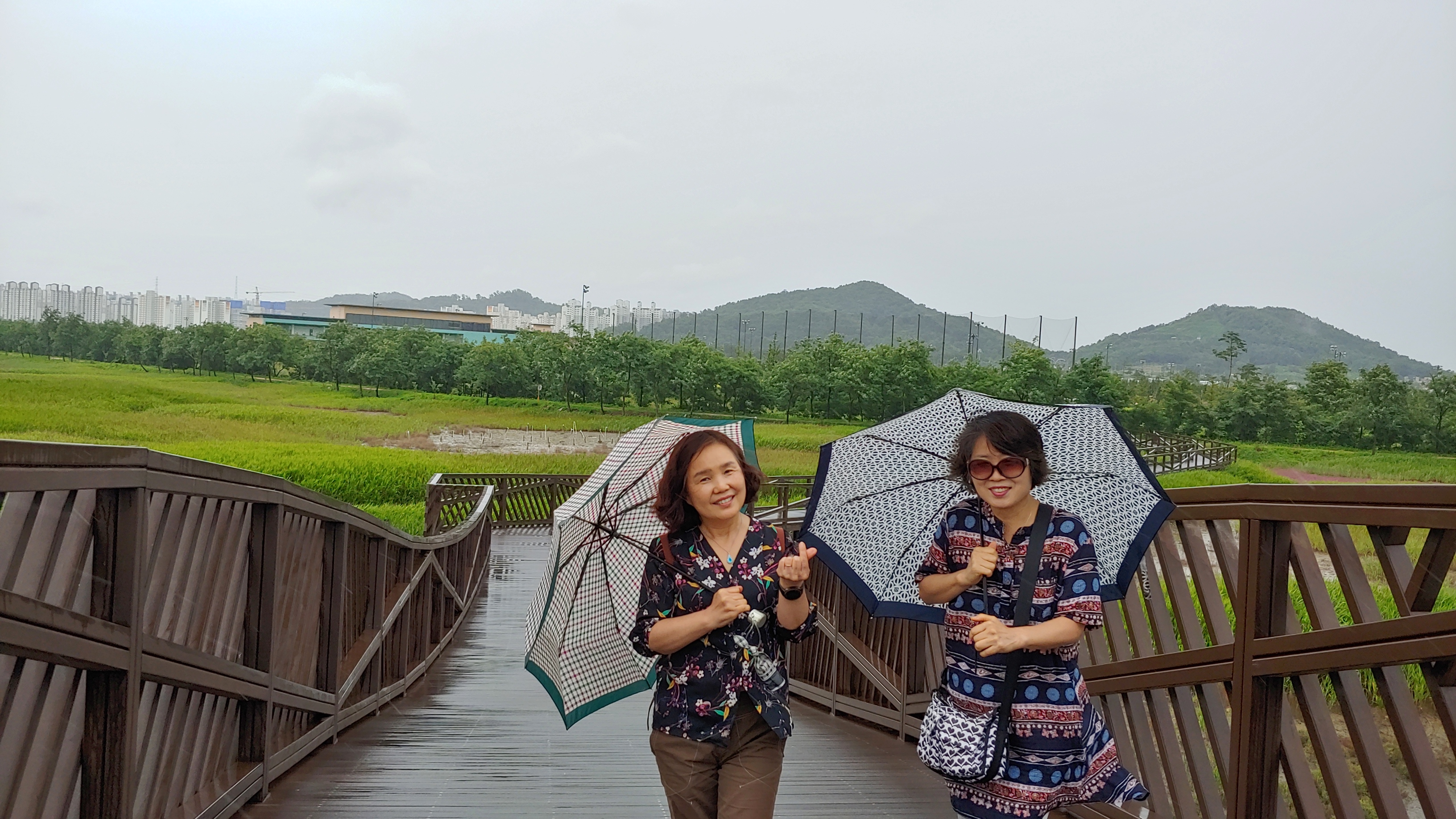 어릴 적처럼 비에 젖은 발을 첨벙첨벙