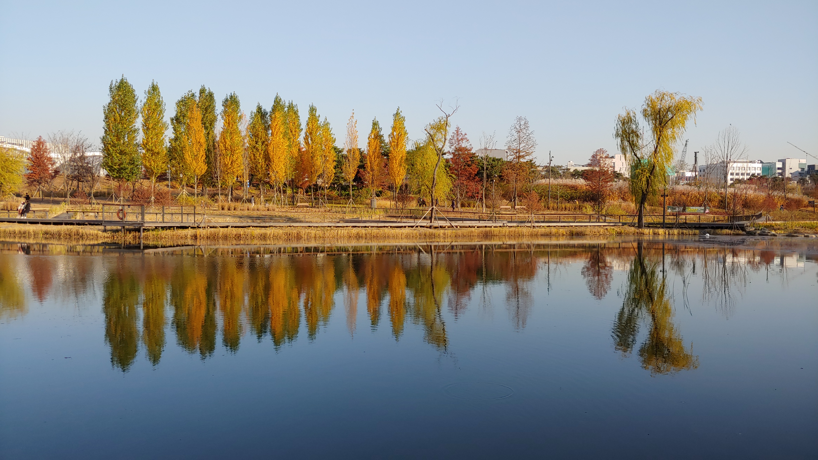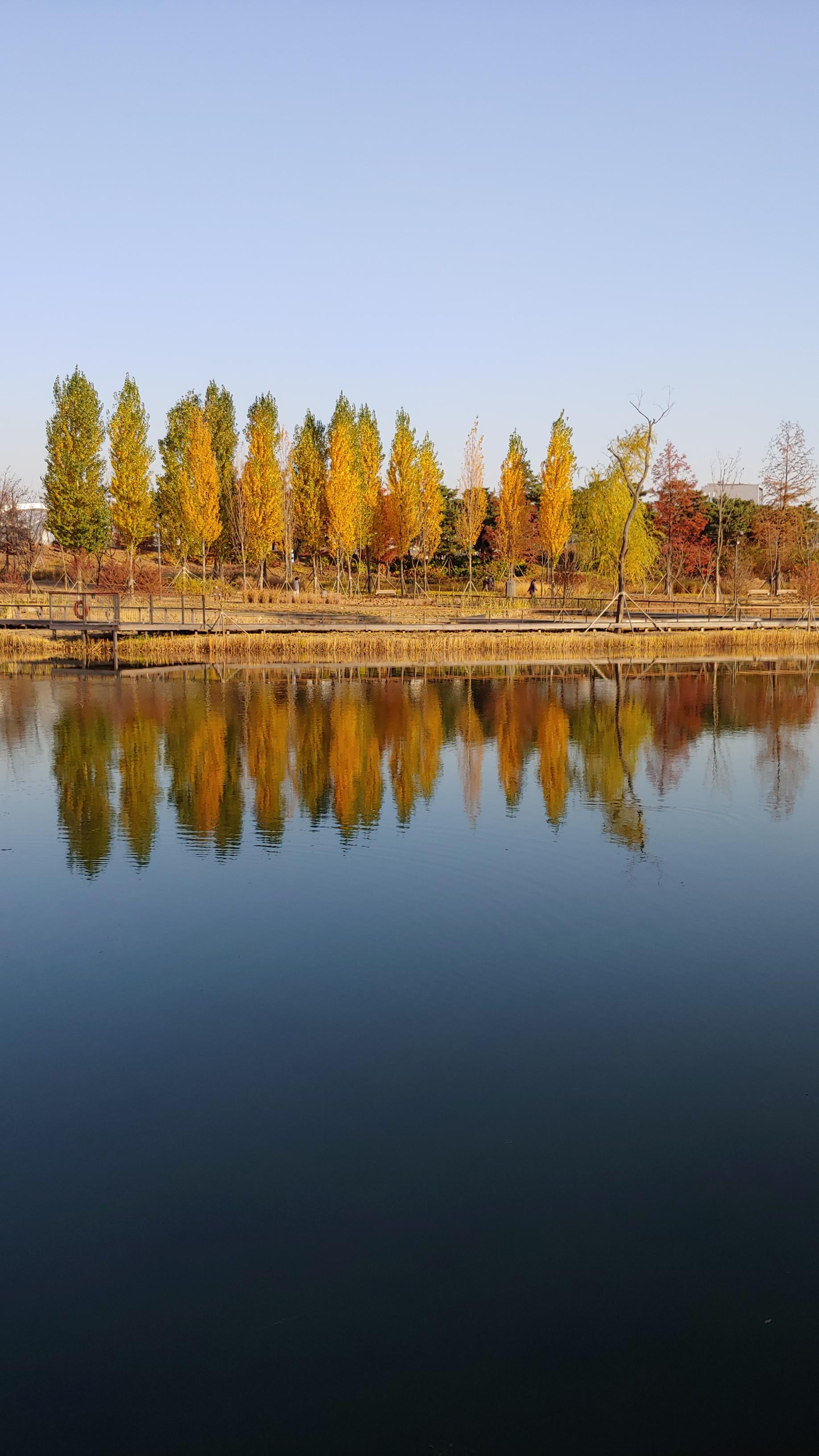 대왕참나무 단풍이 파란 하늘과 잘 어울리는 날이다.