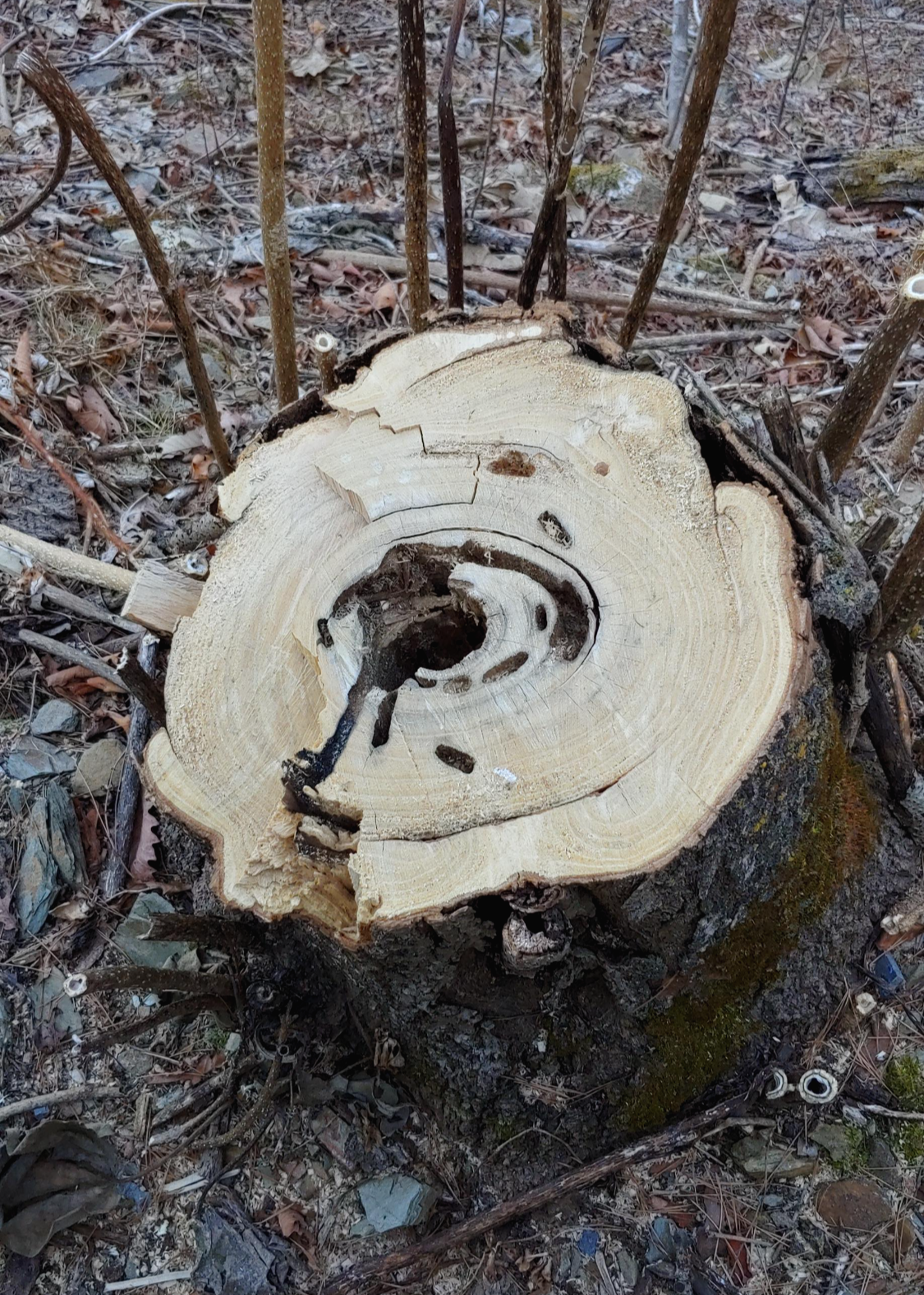 눈길을 이리저리 돌리니 간혹 오래된 나무 밑둥을 잘라낸 것이 눈에 띈다.