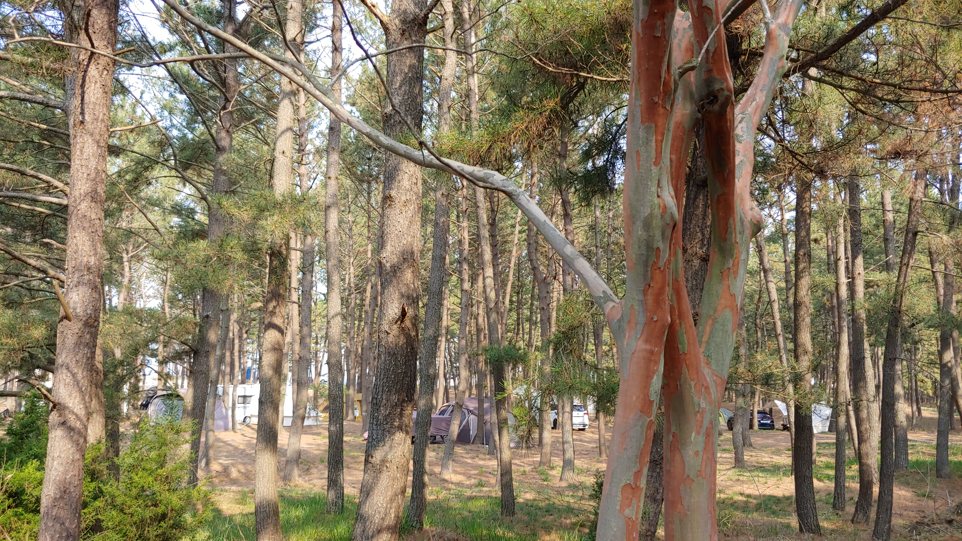 솔숲 아래에서 야영을 하면 저절로 건강해지는 느낌이 들 것 같다.