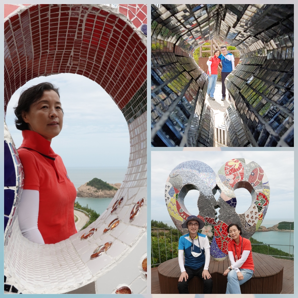 얼굴을 쏙 내밀고 찍기도 하고, 하트 모양 설치물 앞에 앉기도 하고, 하누넘 해변을 배경으로 찍기도 하고...
