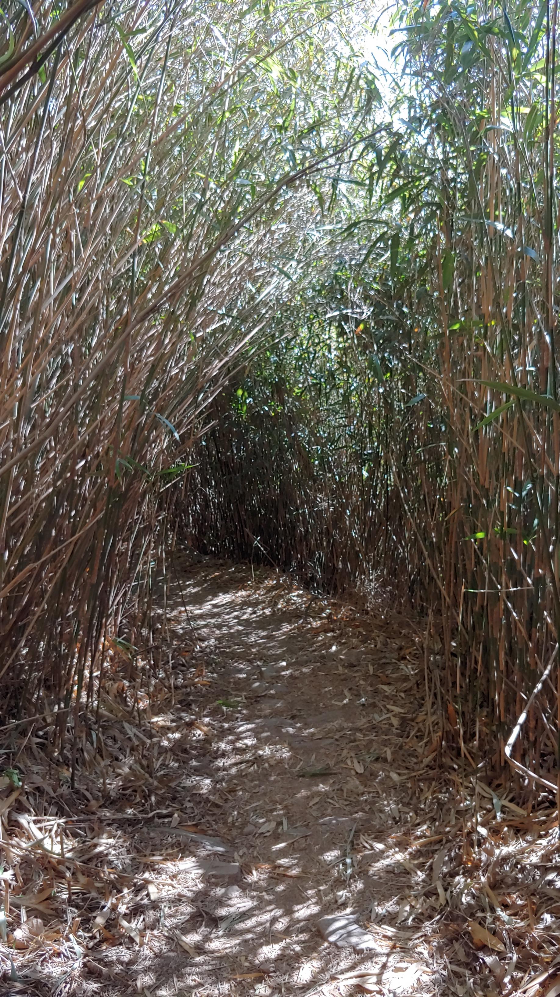 대숲 터널을 지나 마을로 내려가는 길입니다.
