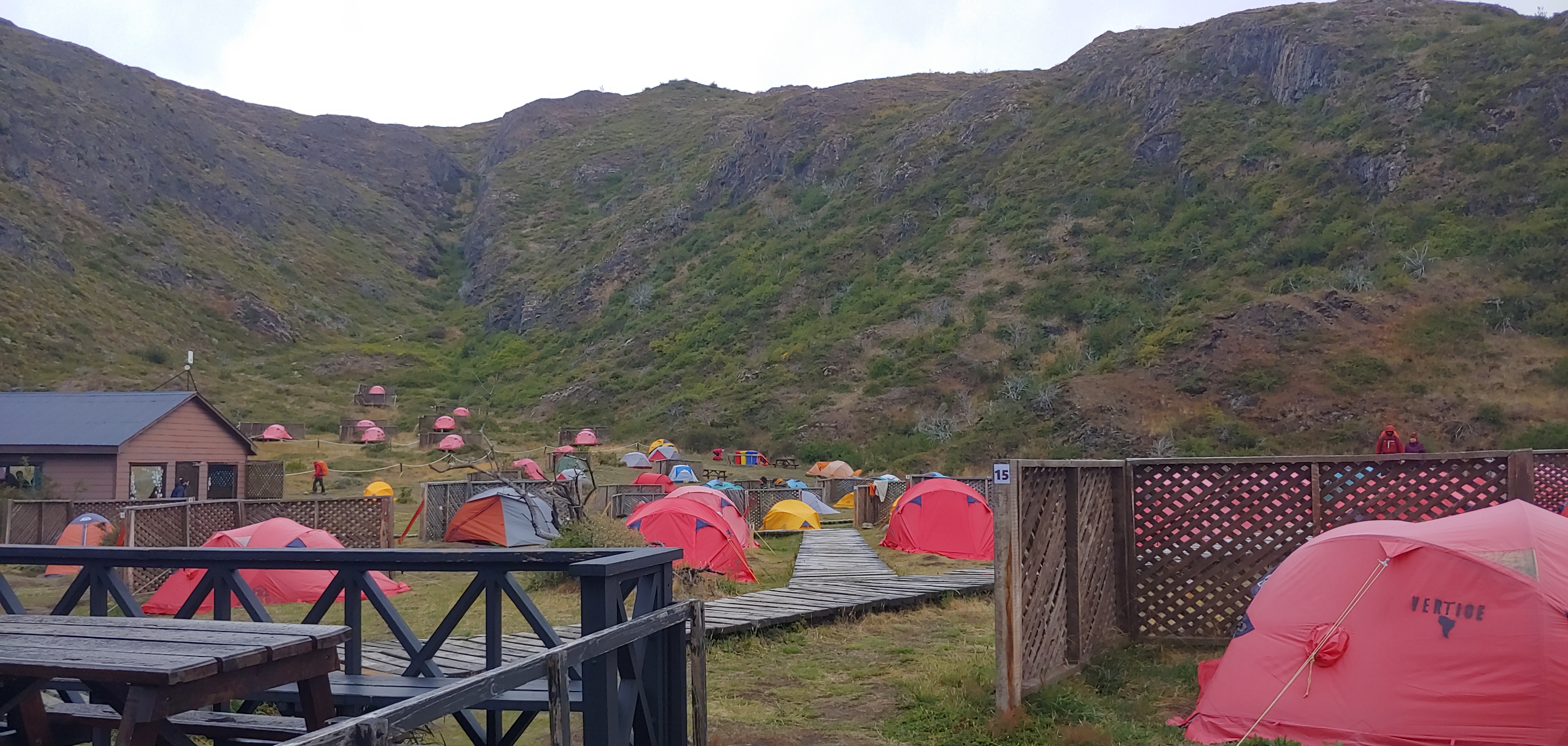 파이네 그란데 산장은 건물 안에서 묵을 수도 있고, 밖에서 야영을 할 수도 있다.
