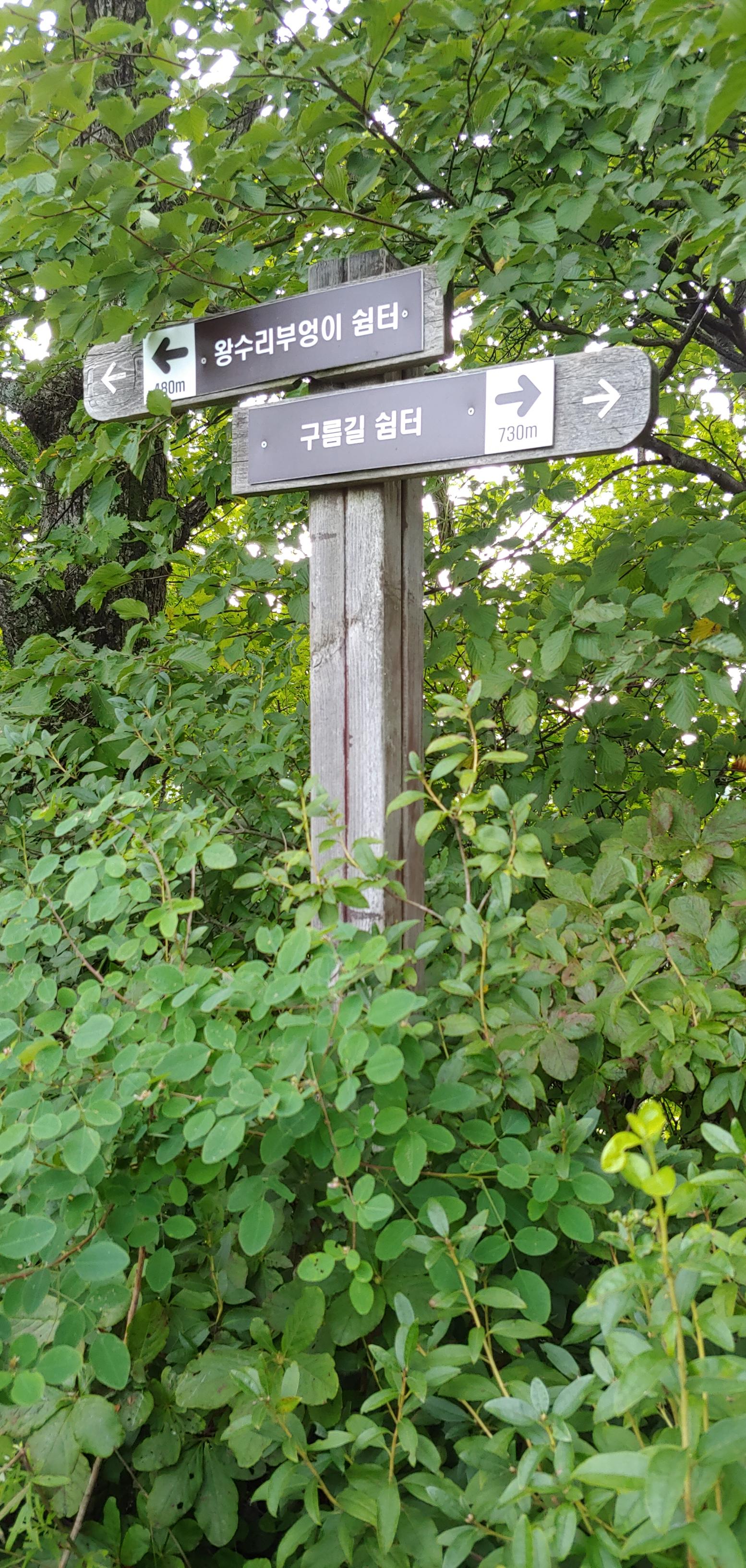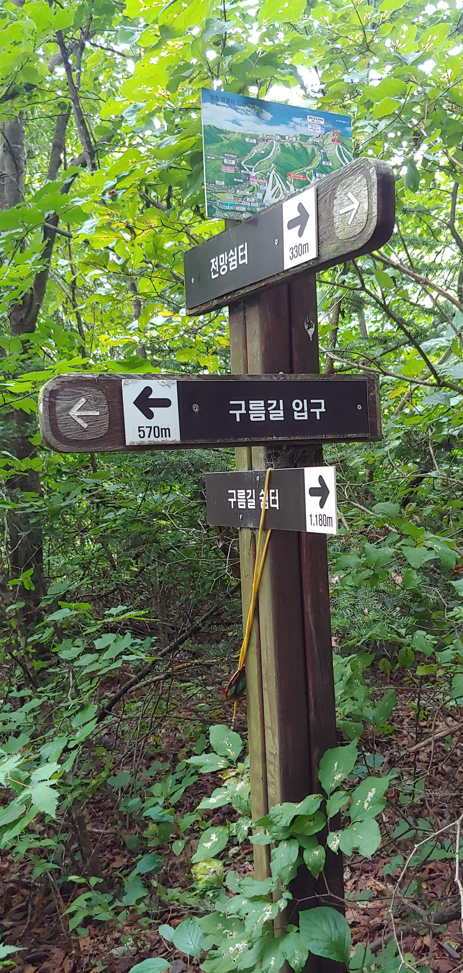 구름길 이정표에는거리 표시도 잘 되어 있다.