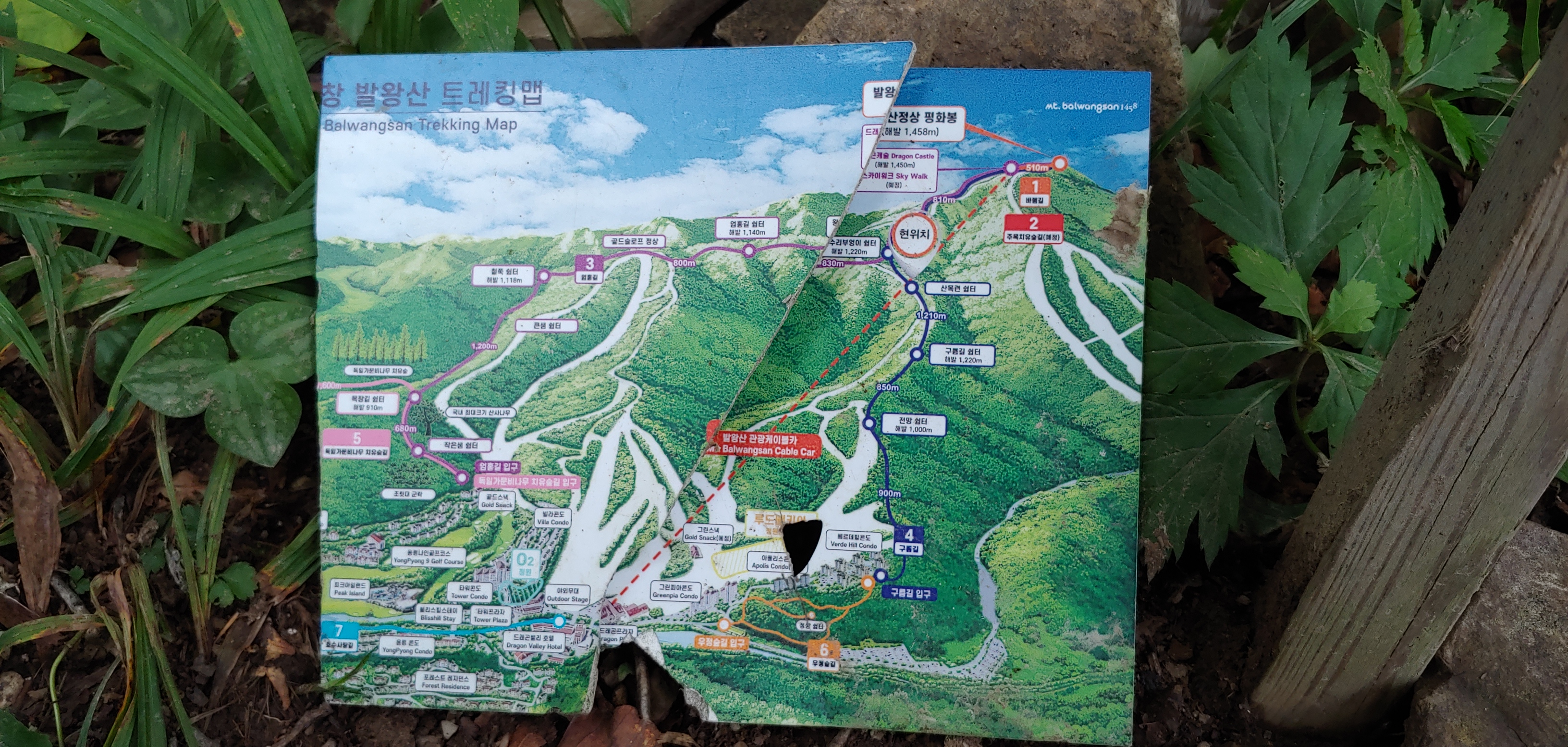 부서진 안내지도판을 살펴보면 길을 찾기가 쉬워진다.