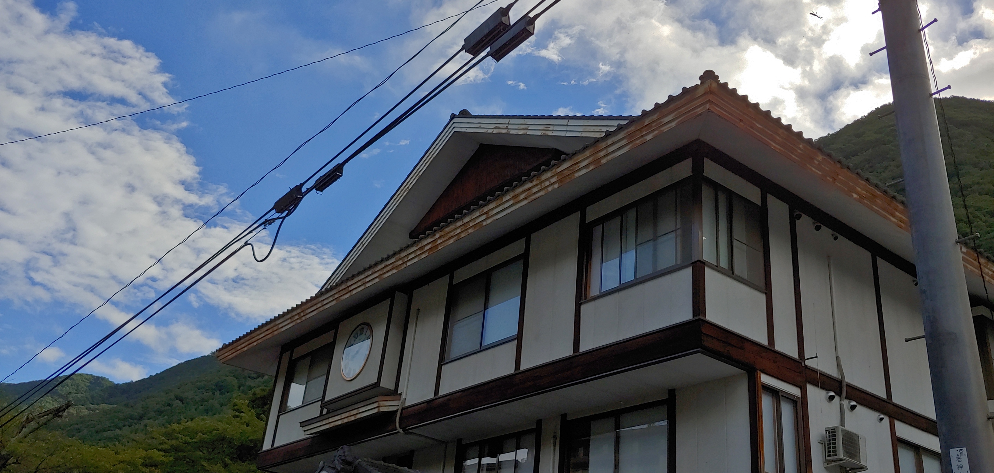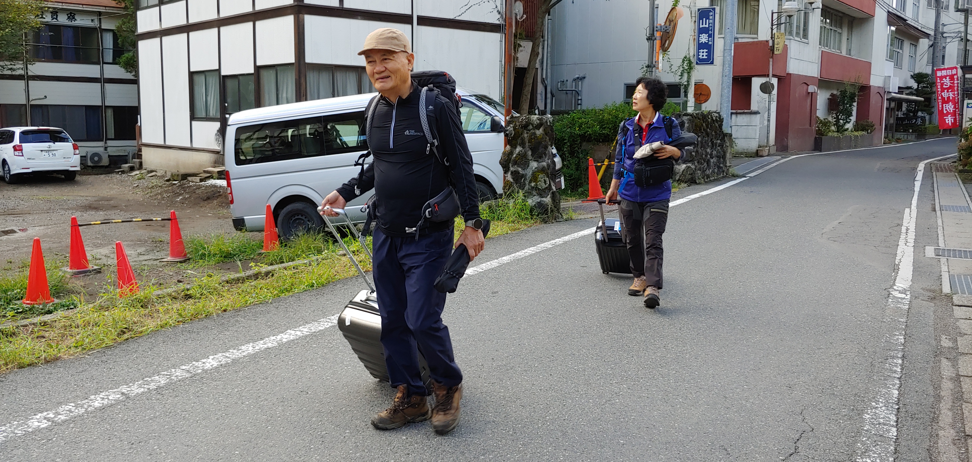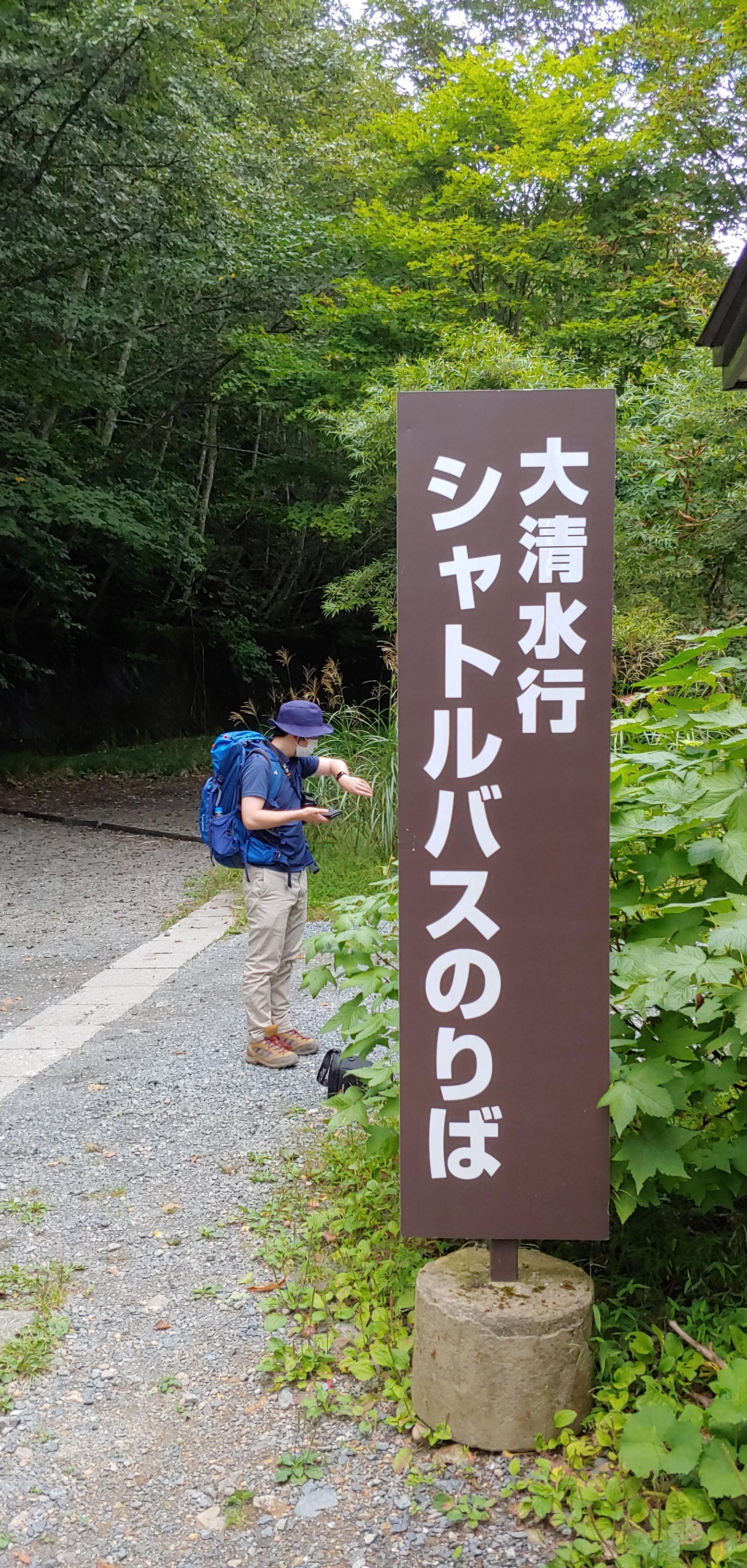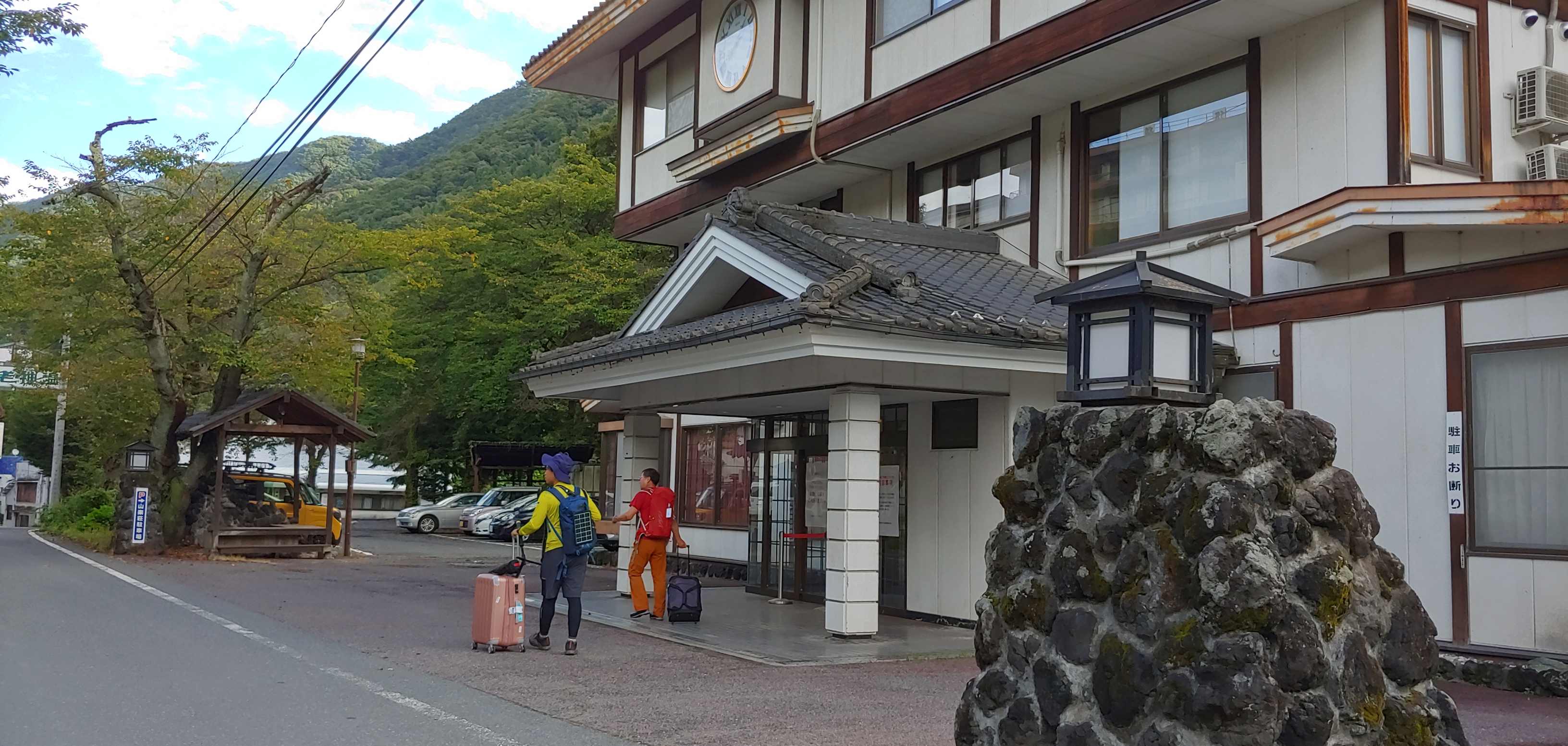 온천호텔 앞에서 오제 국립공원 입구 오시미즈로 출발하려고 준비를 하며
