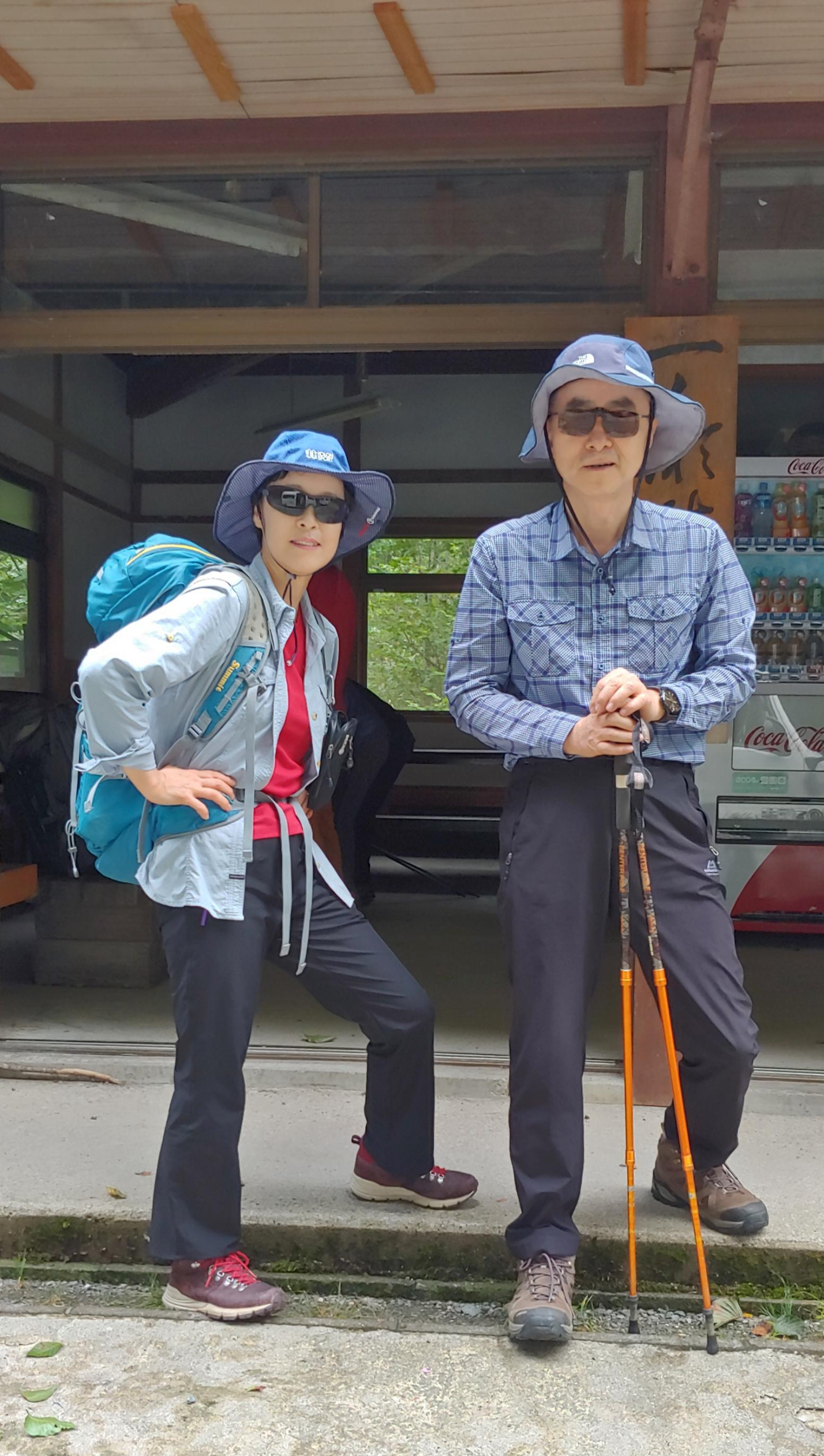 휴게소 앞에서 트레킹 시작을 기념하는 사진 한 장!