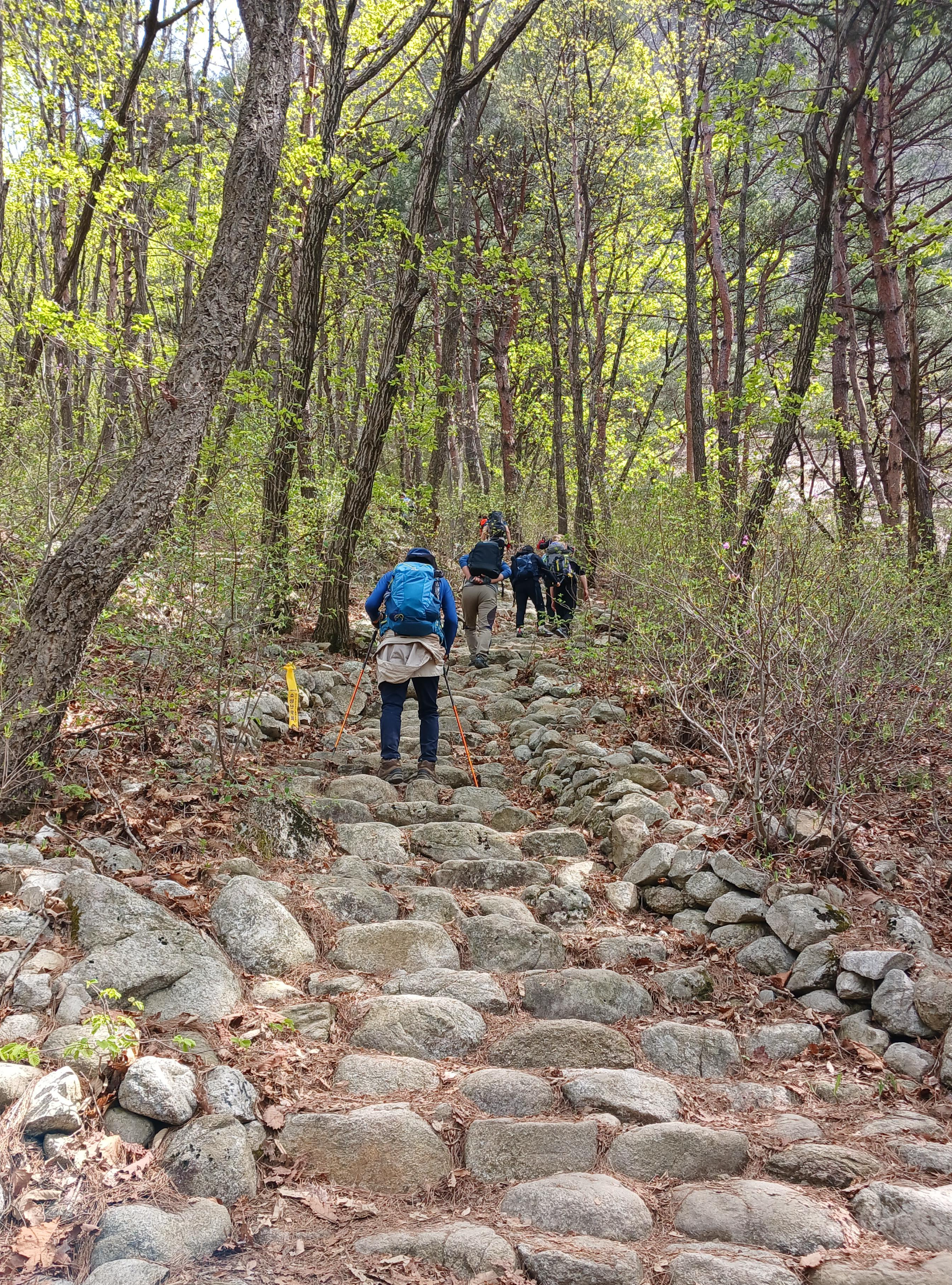 바윗길을 지나니 다시 꺼이꺼이 올라가는 급경사 길이 나옵니다.