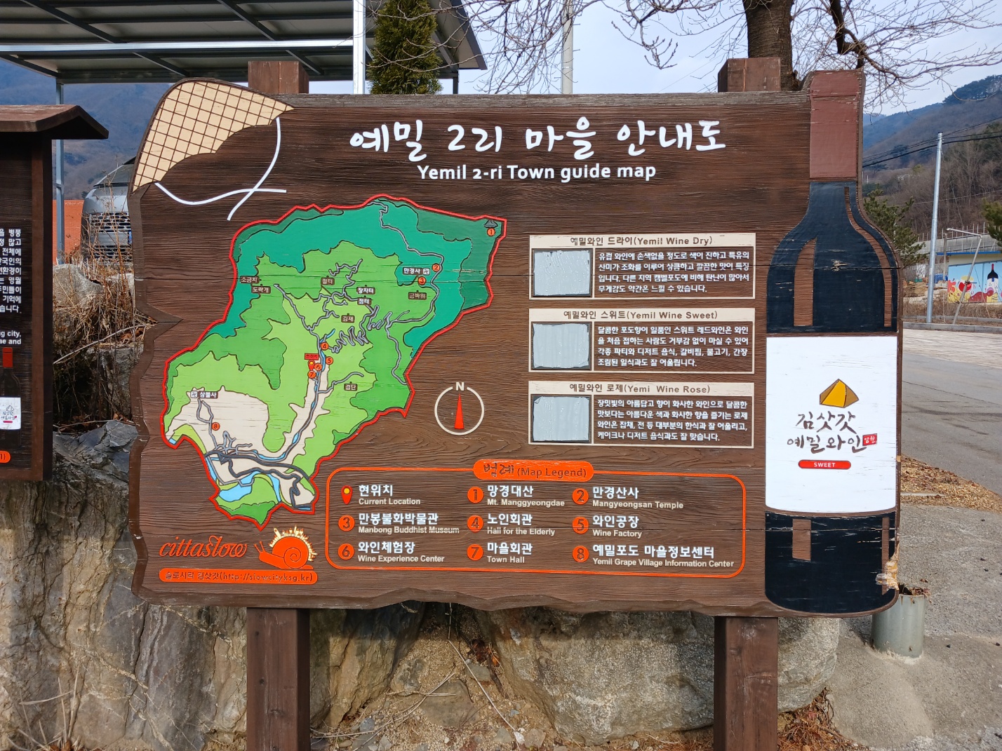 여기에서 판매하는 와인은 예밀마을에서 생산된 포도로 2년 숙성을 시킨 와인이라고 하는데 깊은 맛이 나지는 않습니다.