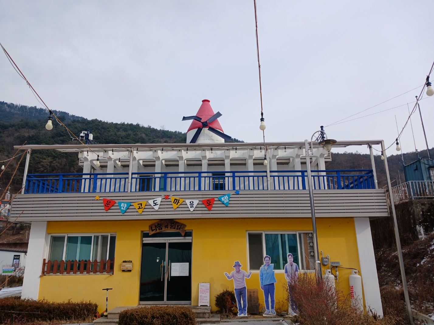 아침에 본 모운동 마을호텔에 가까이 다가가서 살펴 봅니다.
