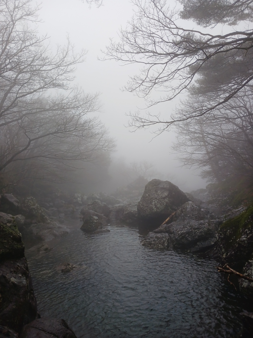 안개가 부옇게 낀 공간에 나무와 바위, 그리고 이끼가 들어내는 분위기가 몽환적이라 가다가 여러 번 발길을 멈추게 된다.