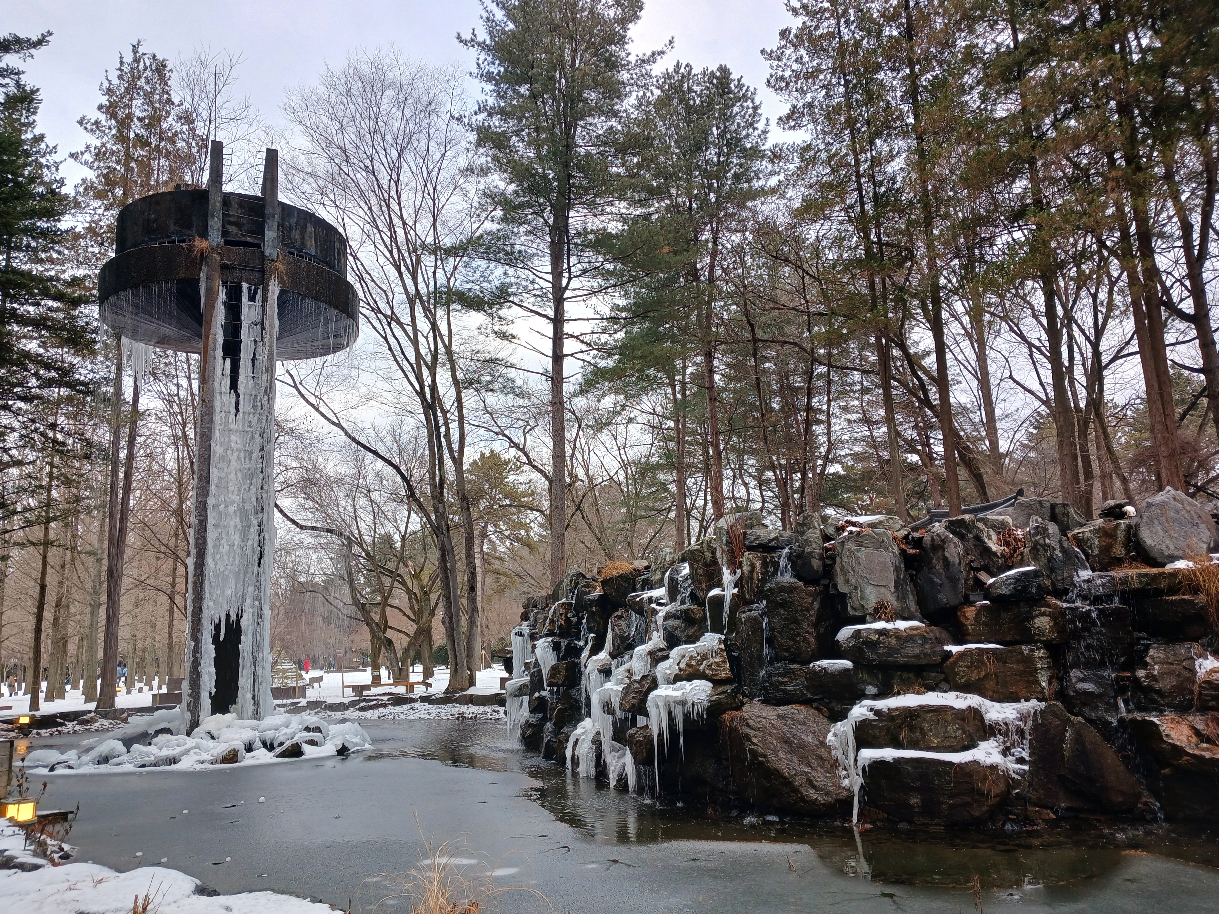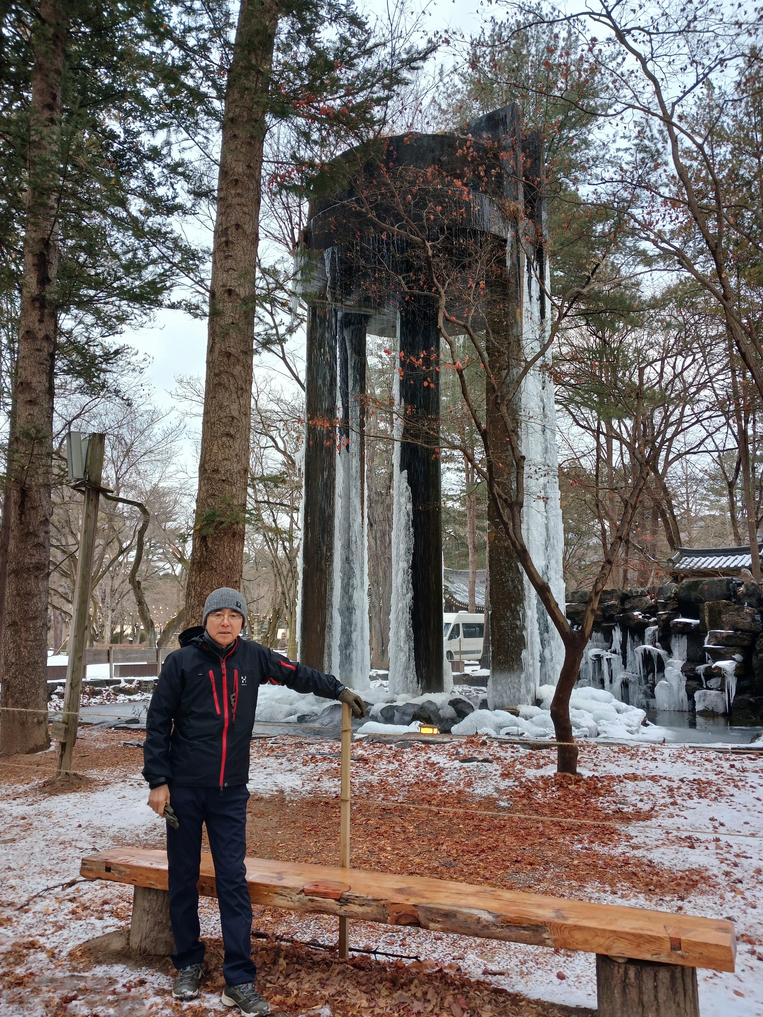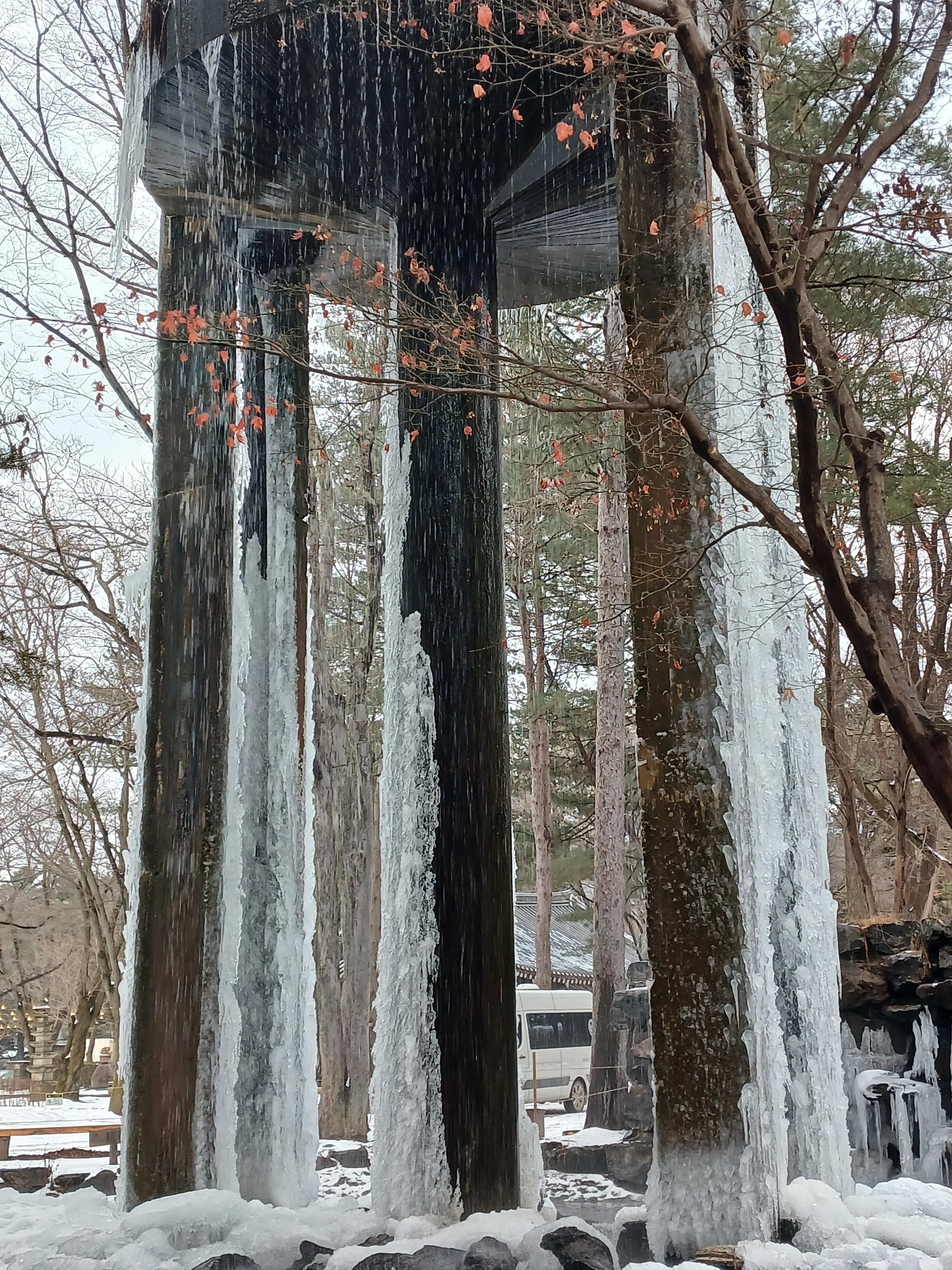 물이 얼어붙어 장관을 연출한다.